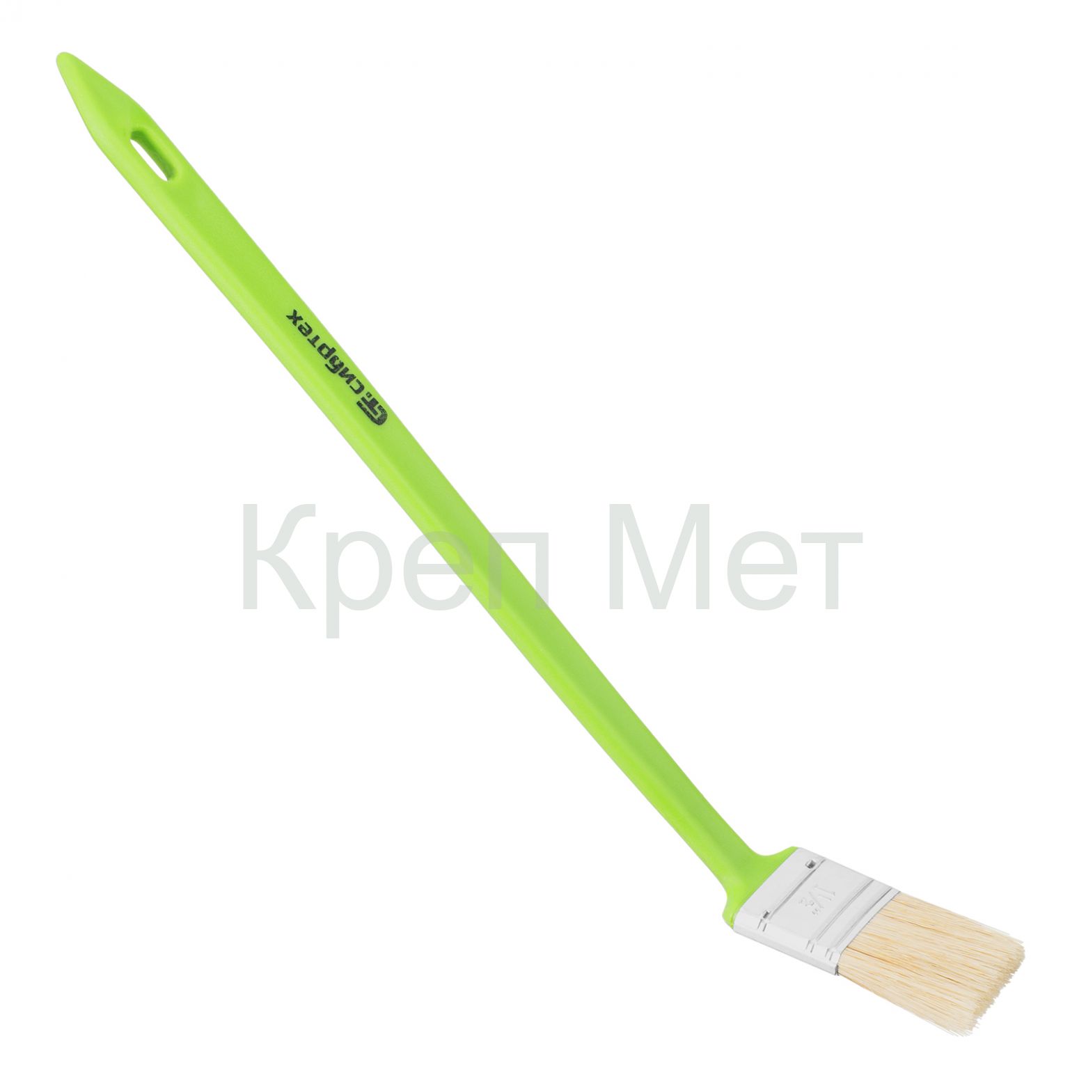 Радиаторная кисть Сибртех 83856 шириной 36 мм, с натуральной щетиной и пластиковой ручкой, позволяет окрашивать радиаторы, трубы, проволочные конструкции. Особенно удобна для покраски углов и стыков пола или потолка со стенами. Удлиненная ручка облегчает проведение малярных работ. Натуральная щетина с добавлением искусственного ворса устойчива к деформации и сохраняет упругость и краскообменные качества при использовании масляных красок и эмалей.
