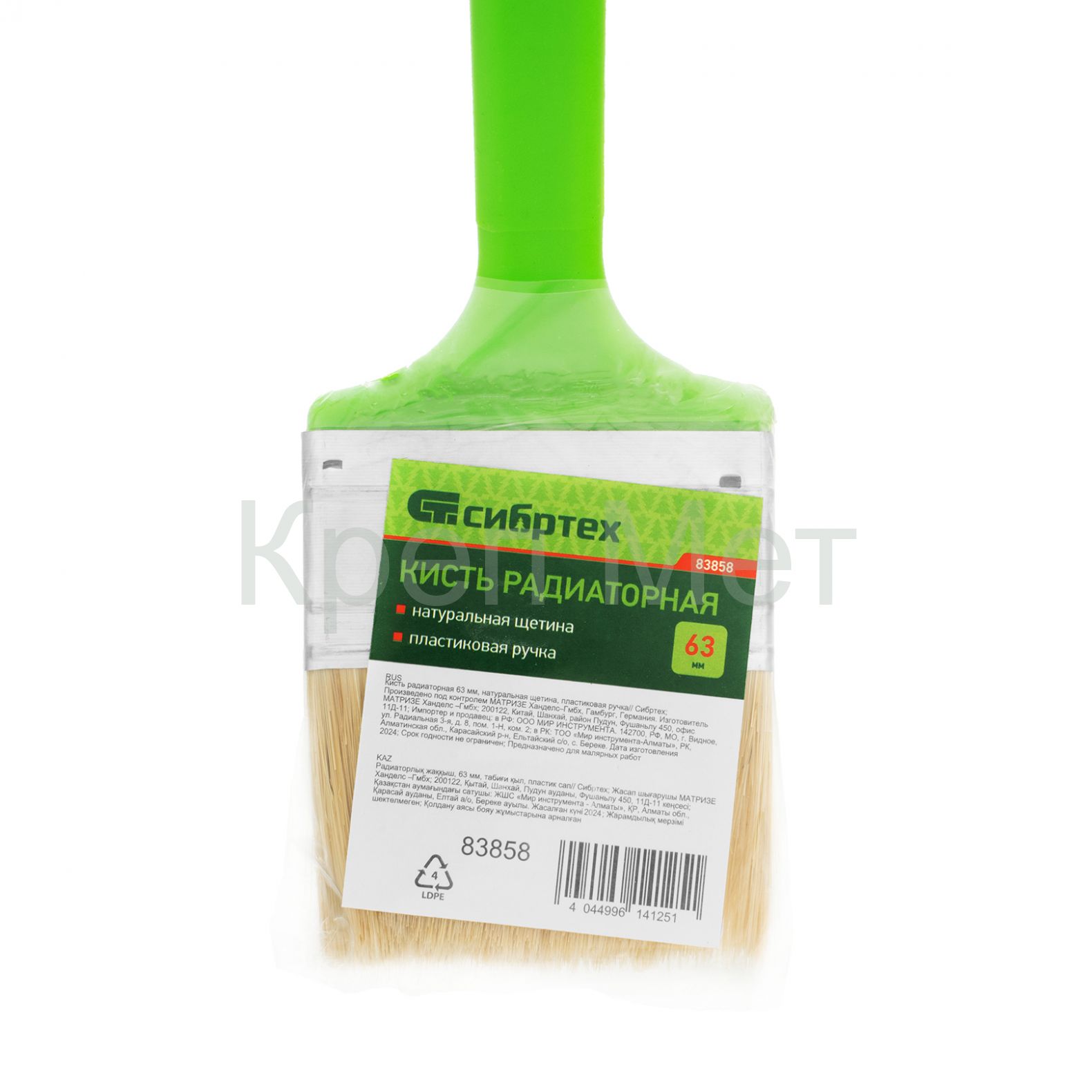 - Кисть радиаторная 63 мм, натуральная щетина, пластиковая ручка Сибртех