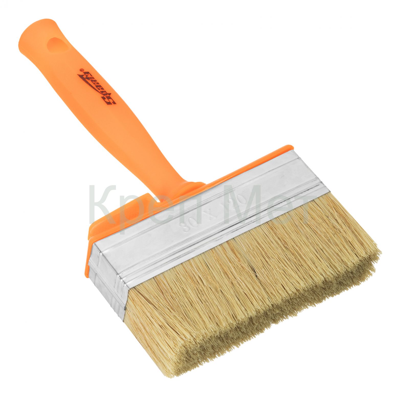 Кисть-ракля Sparta 841068 толщиной 30 мм и шириной 120 мм, с натуральной щетиной, пластмассовыми корпусом и ручкой, используется для малярных работ на участках большой площади, поэтому удобна для обработки стен, потолков и фасадов. Натуральная щетина устойчива к химическому воздействию, поэтому не деформируется и сохраняет упругость при работе с ЛКМ на водной основе, грунтовками, масляными красками и клеящими составами.