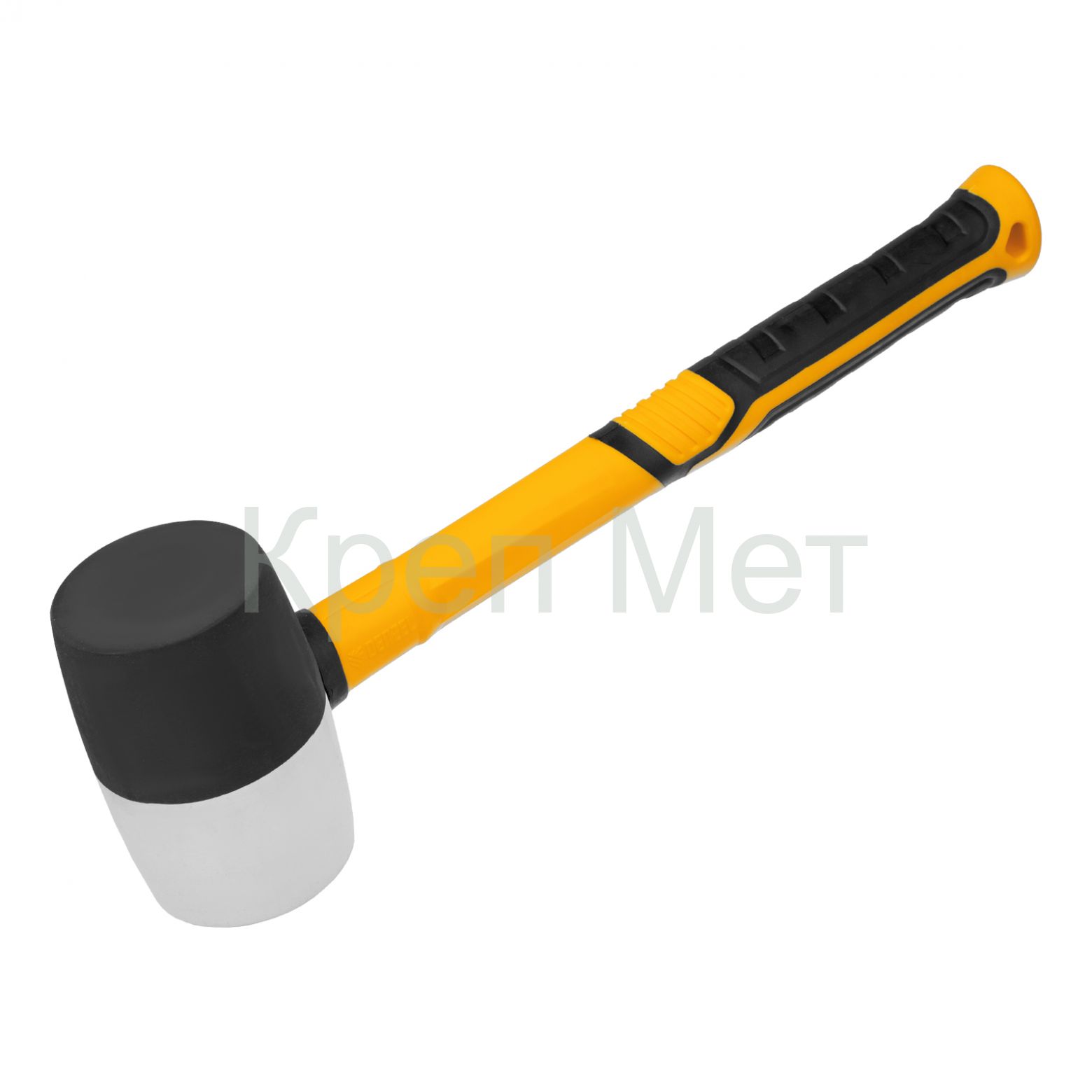 - Киянка резиновая, 450 г, черно-белая, фибергласовая рукоятка c TPR покрытием Denzel
