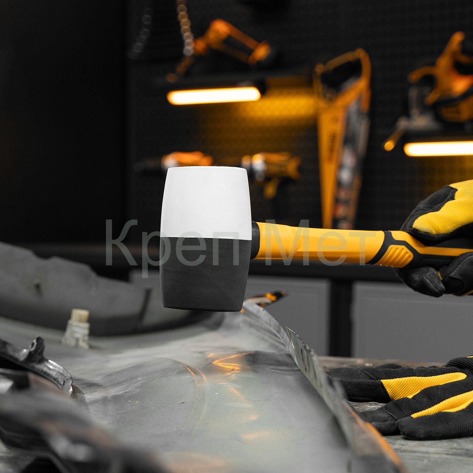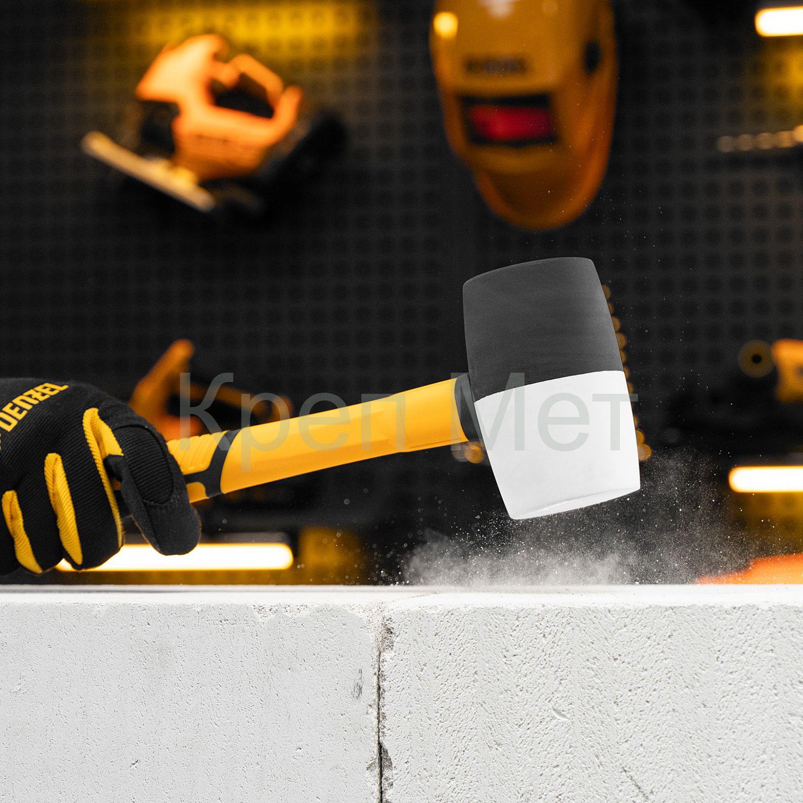 - Киянка резиновая, 680 г, черно-белая, фибергласовая рукоятка c TPR покрытием Denzel