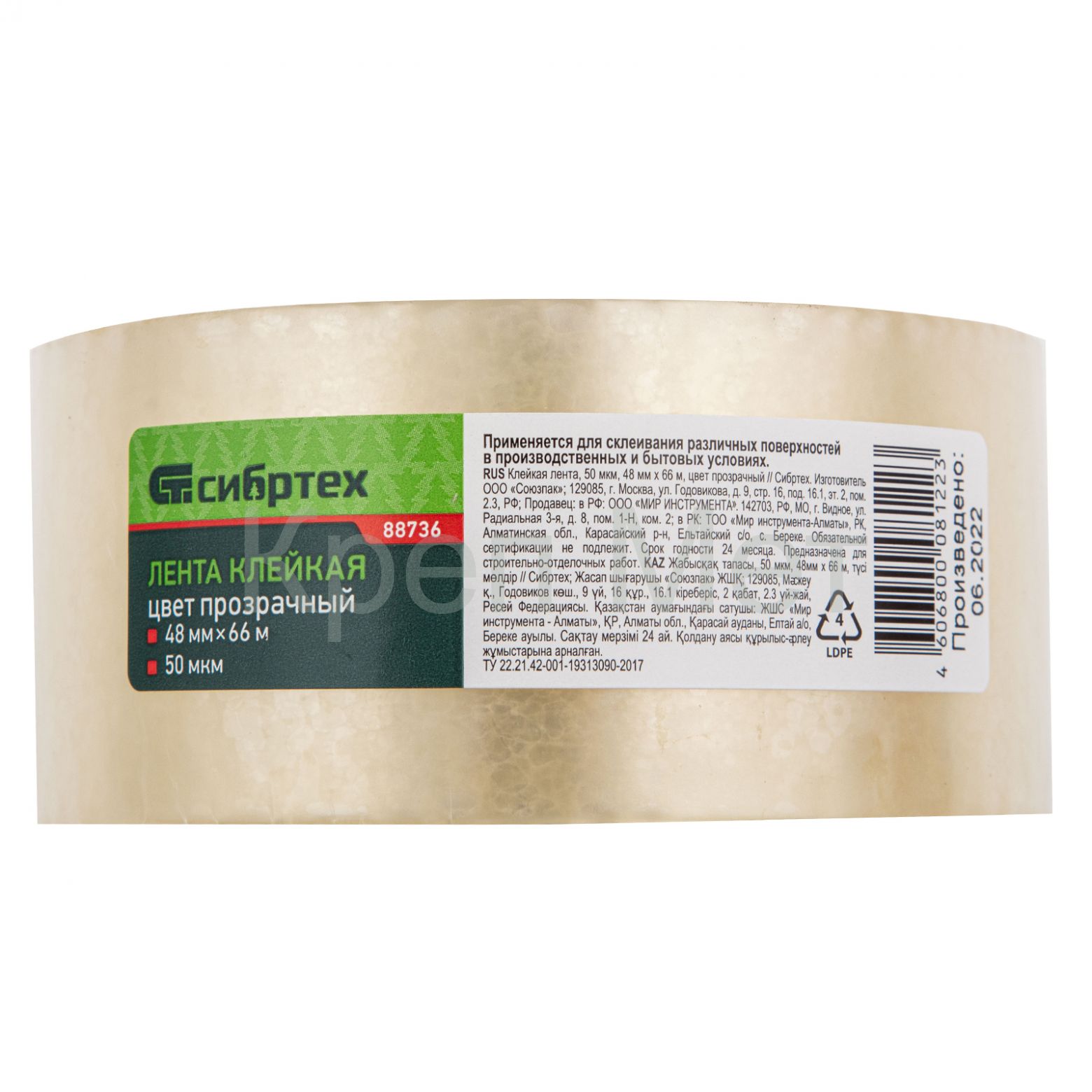 - Клейкая лента, 50 мкм, 48 мм х 66 м, цвет прозрачный Сибртех