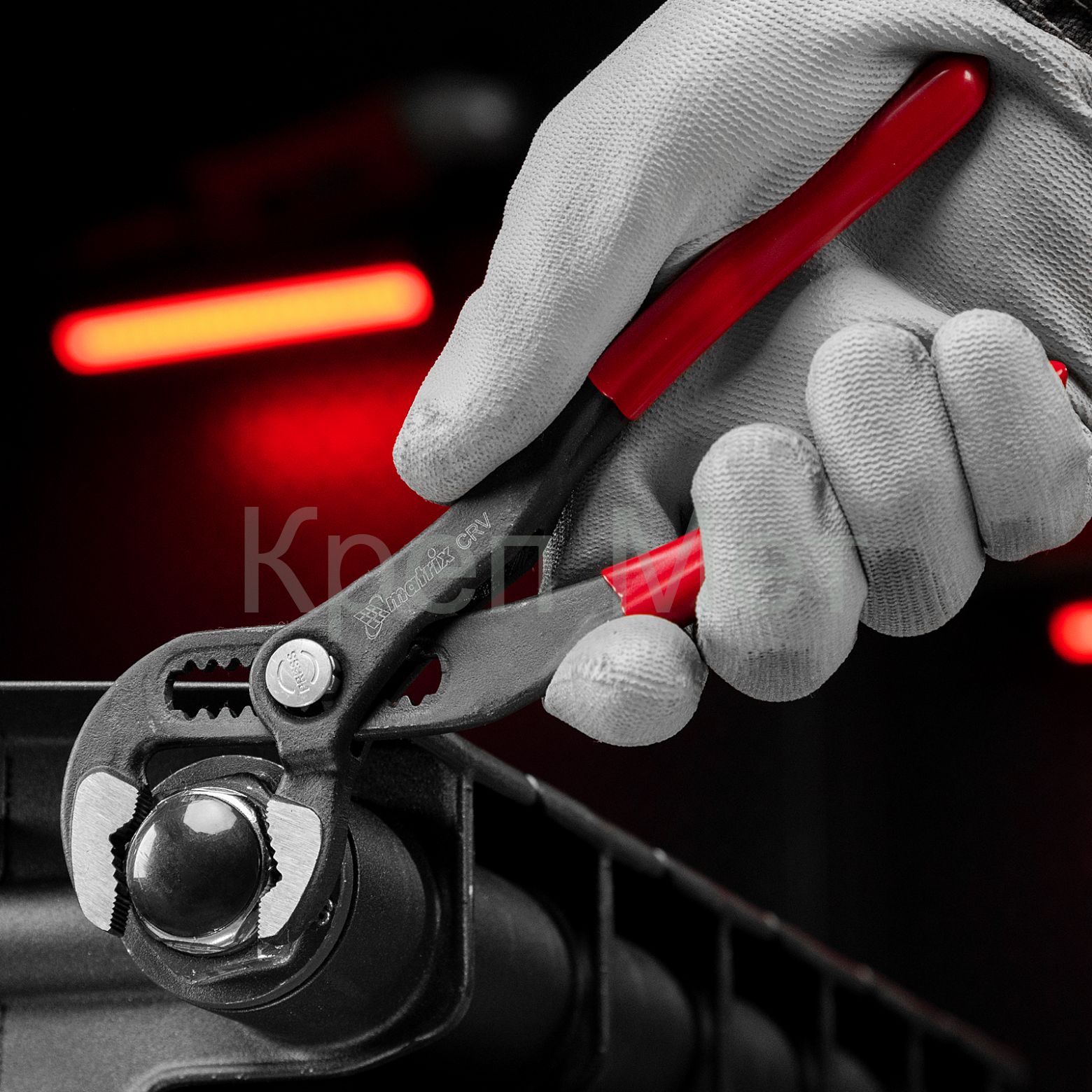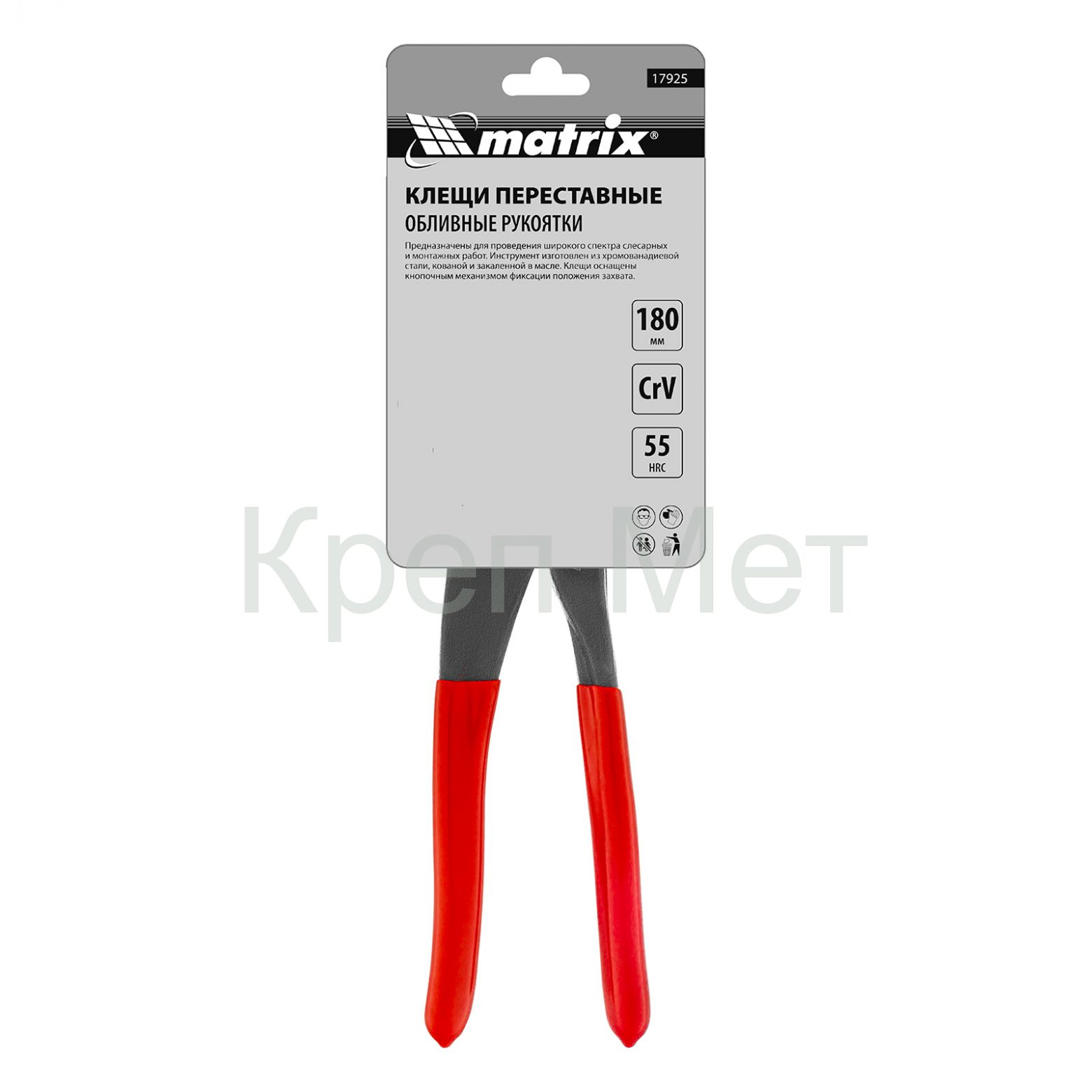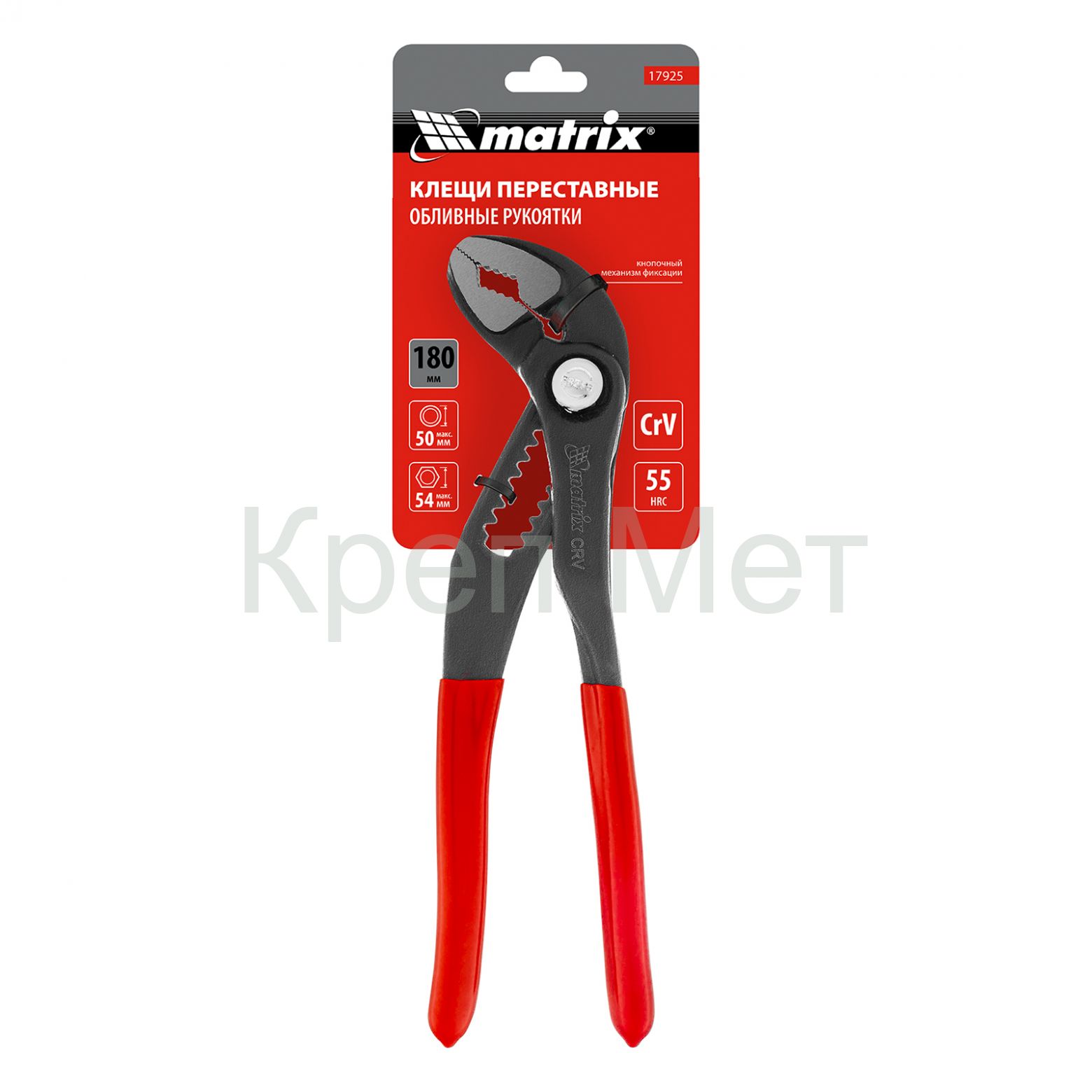 - Клещи переставные 180 мм, кнопочный механизм, хром-ванадий, обливные рукоятки Matrix