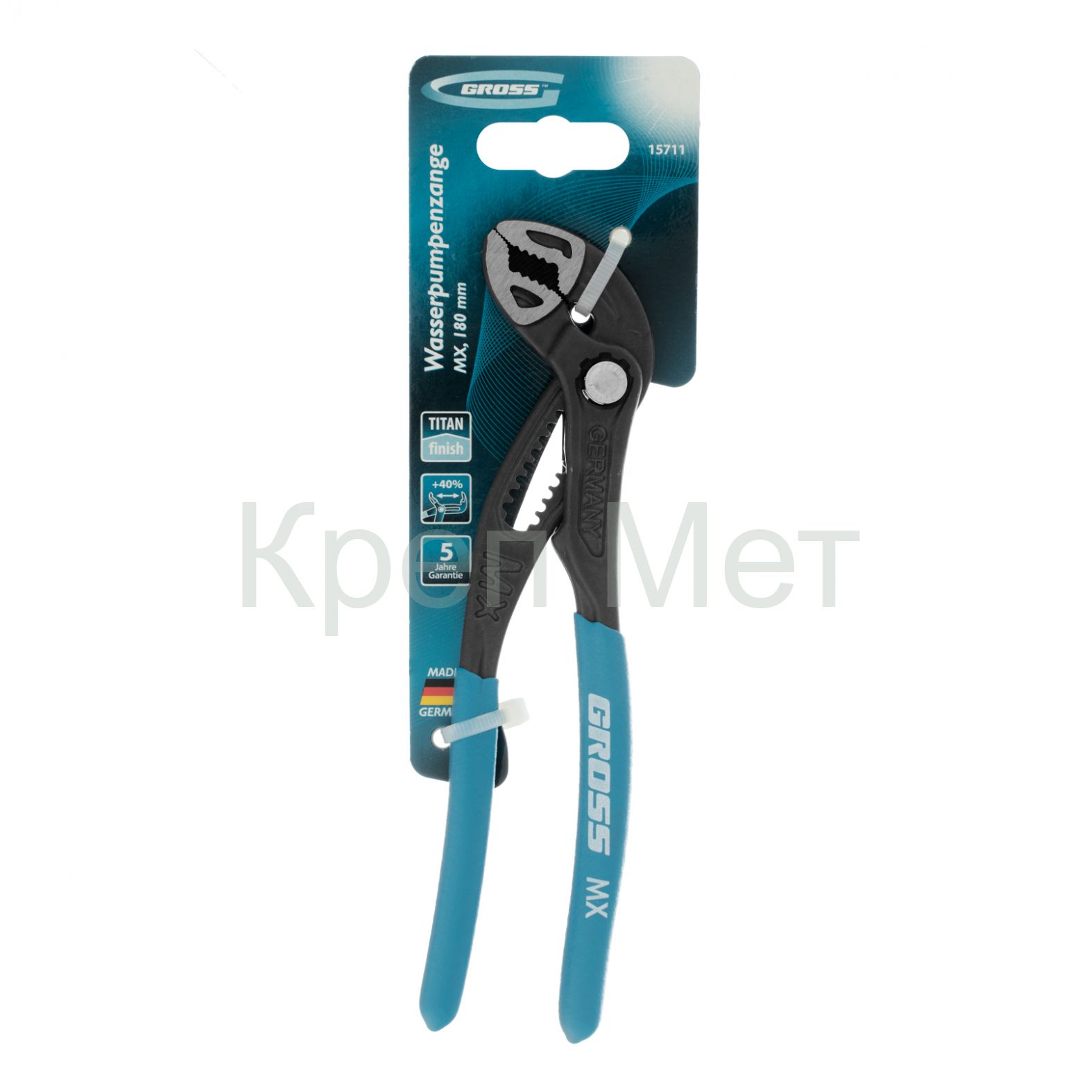 Клещи переставные, кнопочный механизм, обливные рукоятки, 180 мм Gross
