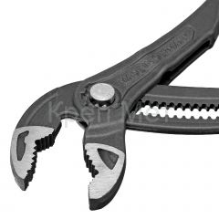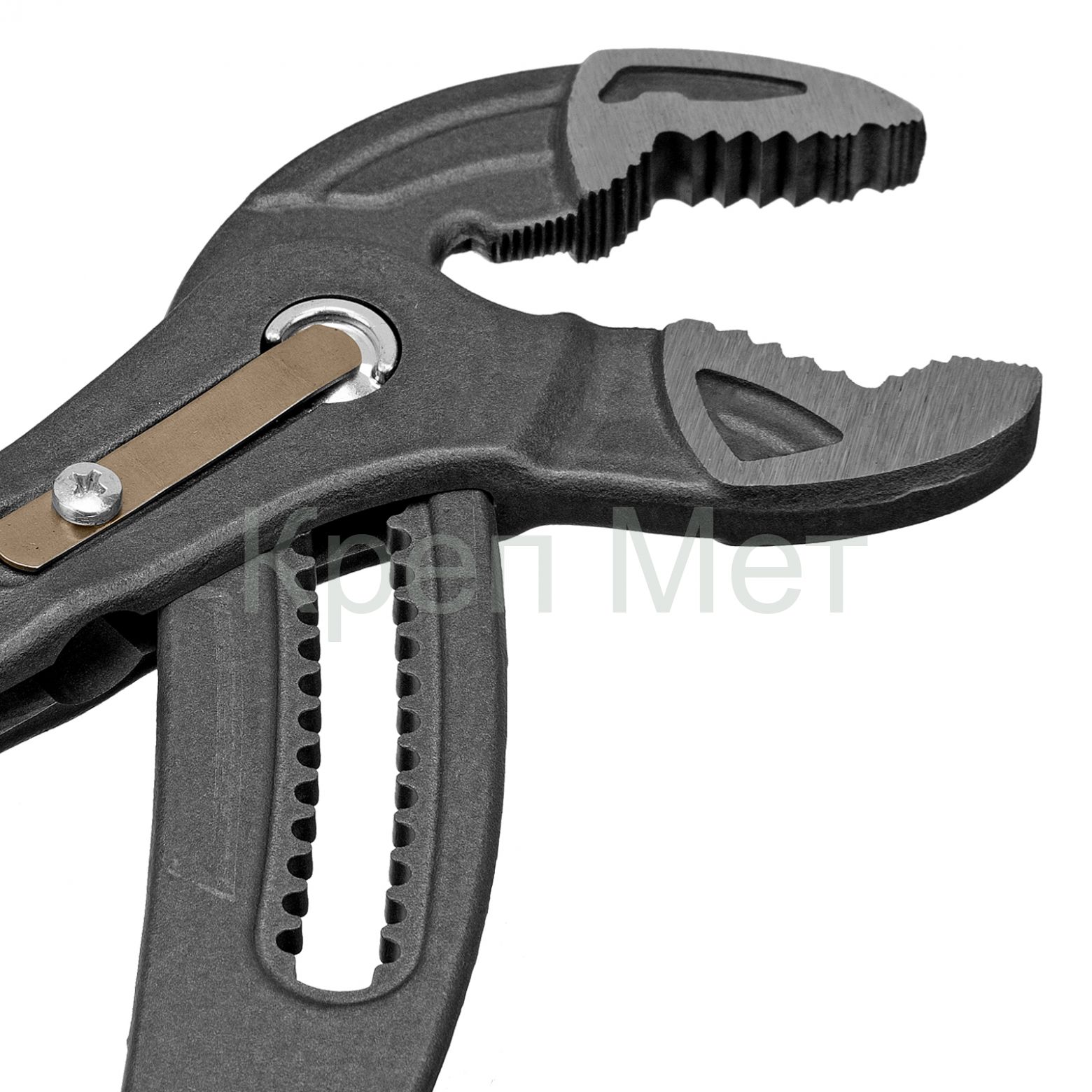 - Удобная работа с деталями разного размера — кнопочный механизм позволяет быстро менять положение губок и фиксировать их в нужном положении.