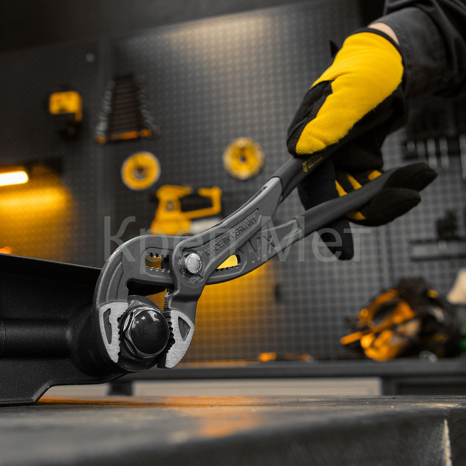 - Прочность и долговечность — клещи изготовлены из стали C45, полимерное покрытие Titan finish защищает рабочие части от коррозии.