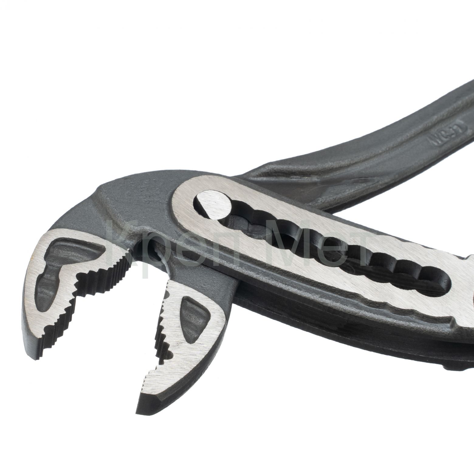 - Универсальность — разнонаправленные зубцы позволяют удерживать детали как с круглым, так и с квадратным профилем.