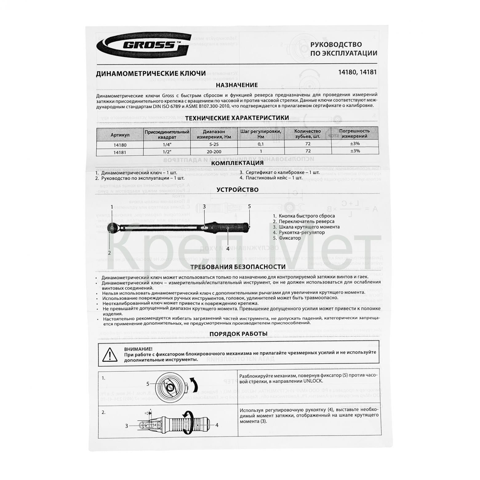 Ключ динамометрический, 20-200 Нм, 1/2", CrV Gross