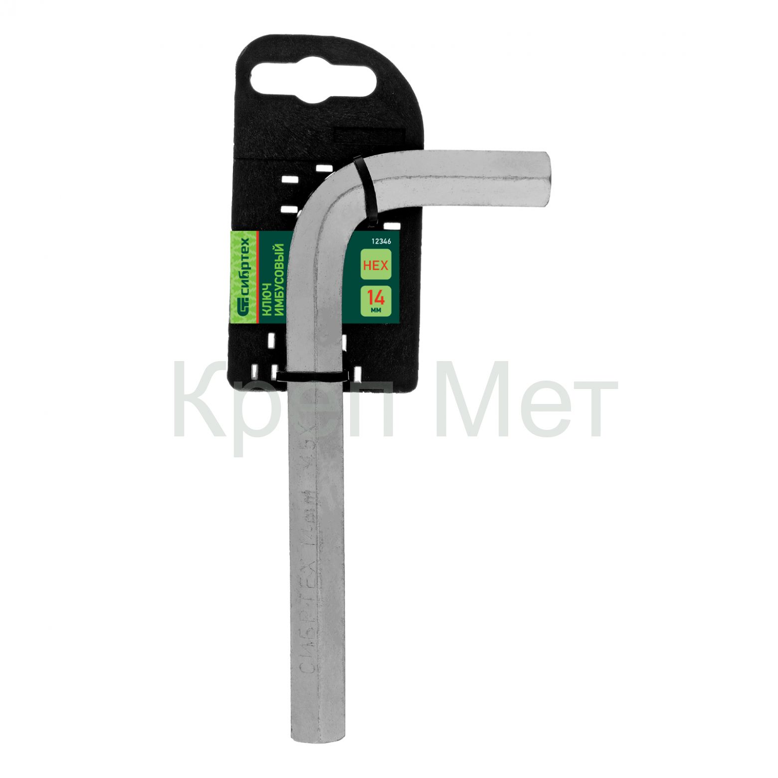 Ключ имбусовый никелированный Сибртех 12346 размером 14 мм, из закаленной стали 45Х, используется для монтажа и демонтажа резьбового крепежа с шестигранным шлицем HEX. Пригодится для сборки мебели, ремонта бытовой техники, велосипедов и автомобилей.