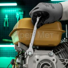 - Высокий показатель прочности — ключ изготовлен из стали хромованадиевой группы, рабочая часть закалена до твердости 45 HRC.