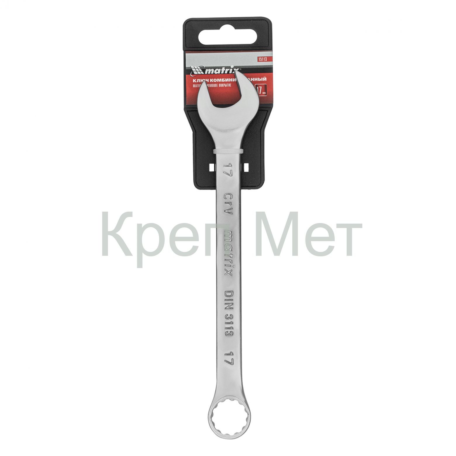 Ключ комбинированный, 17 мм, CrV, матовый хром Matrix
