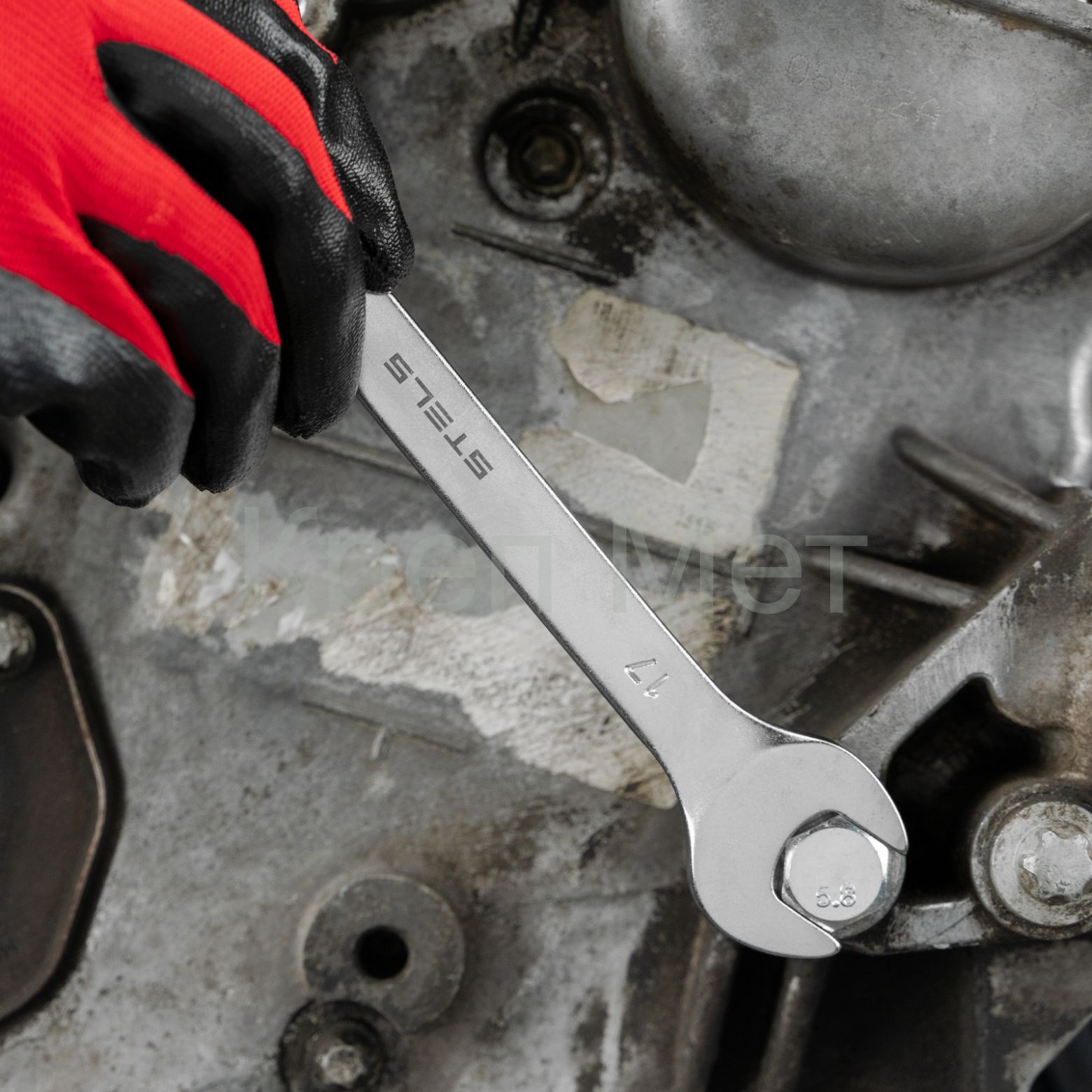 - Ключ комбинированный, 17 мм, CrV, матовый хром Stels