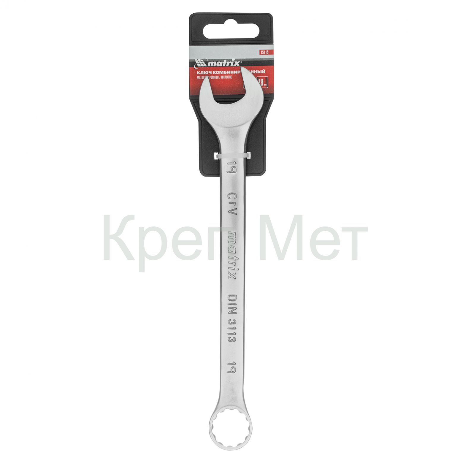 Ключ комбинированный, 19 мм, CrV, матовый хром Matrix