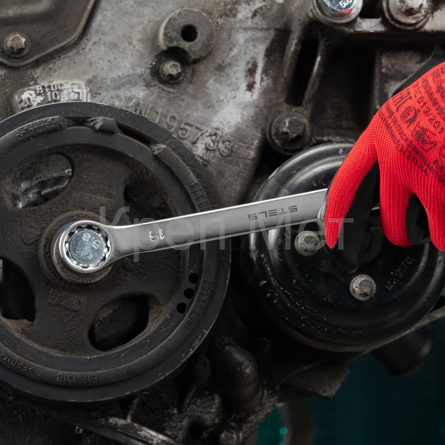 - Ключ комбинированный, 19 мм, CrV, матовый хром Stels