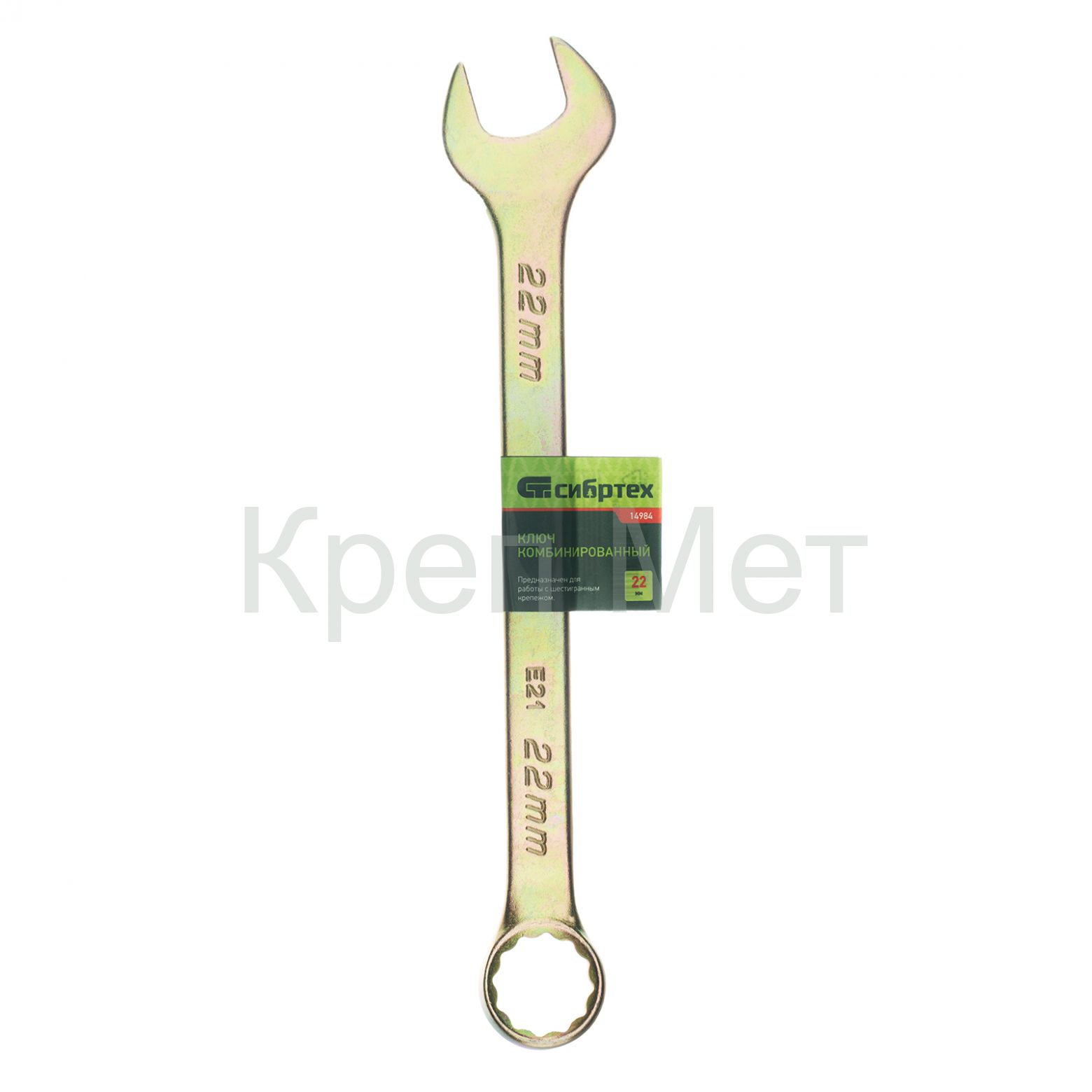 Ключ комбинированный, 22 мм, желтый цинк Сибртех