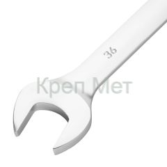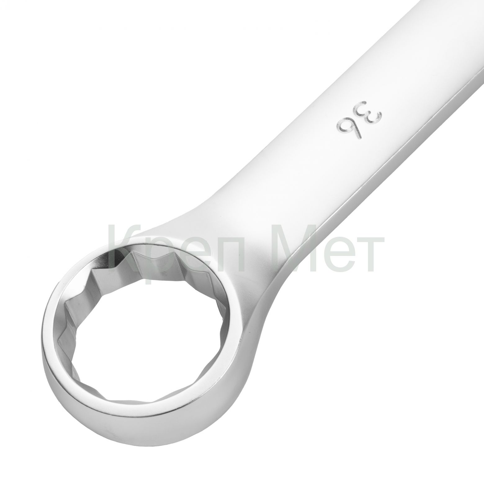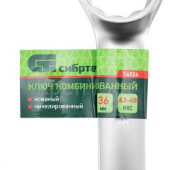 Комбинированный ключ Сибртех 14924 с никелированной поверхностью используется для работы с резьбовым крепежом размером 36 мм. Две рабочие части (рожковая и накидная) расширяют возможности применения инструмента. Кольцевой зев с 12 гранями подходит для работы с болтами и гайками как с шестигранным, так и с двенадцатигранным профилем. Инструмент применяется в автосервисах, на производстве, в строительстве и других сферах, где требуется монтаж крупного резьбового соединения.