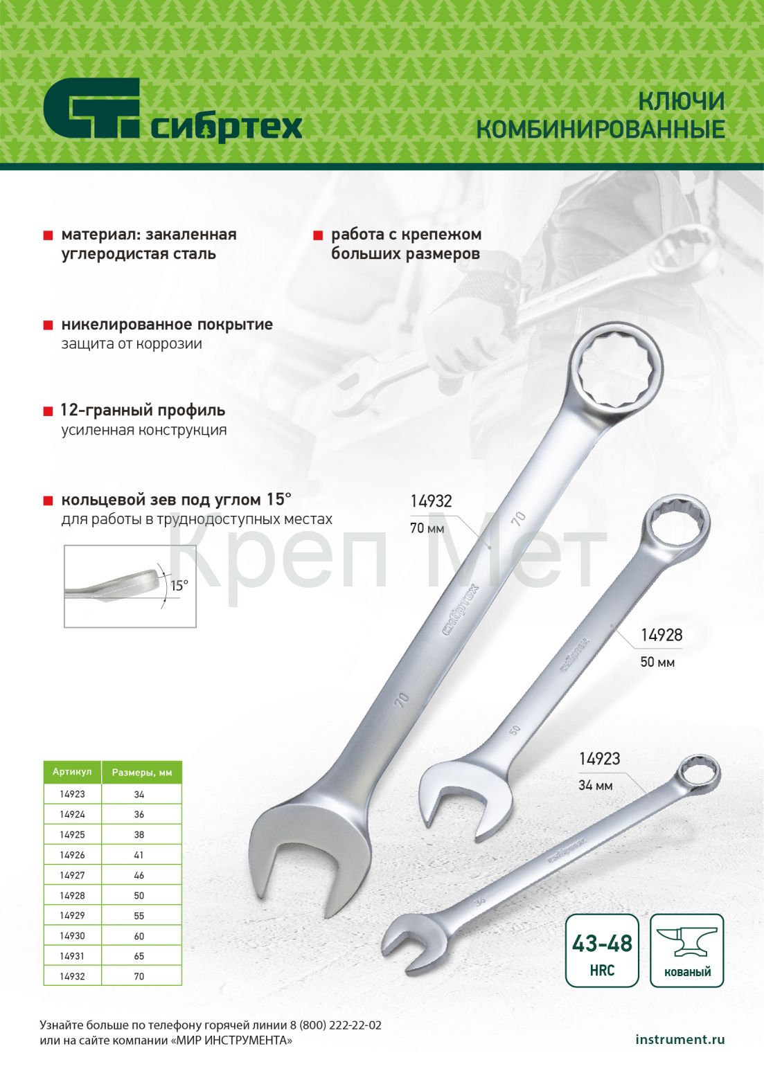 - Ключ комбинированный 50мм, никелированный Сибртех
