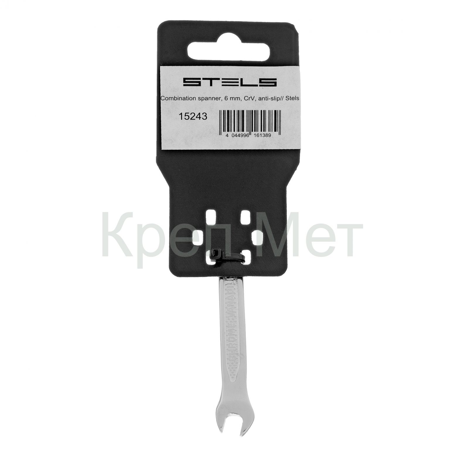- Ключ комбинированный, 6 мм, CrV, антислип Stels