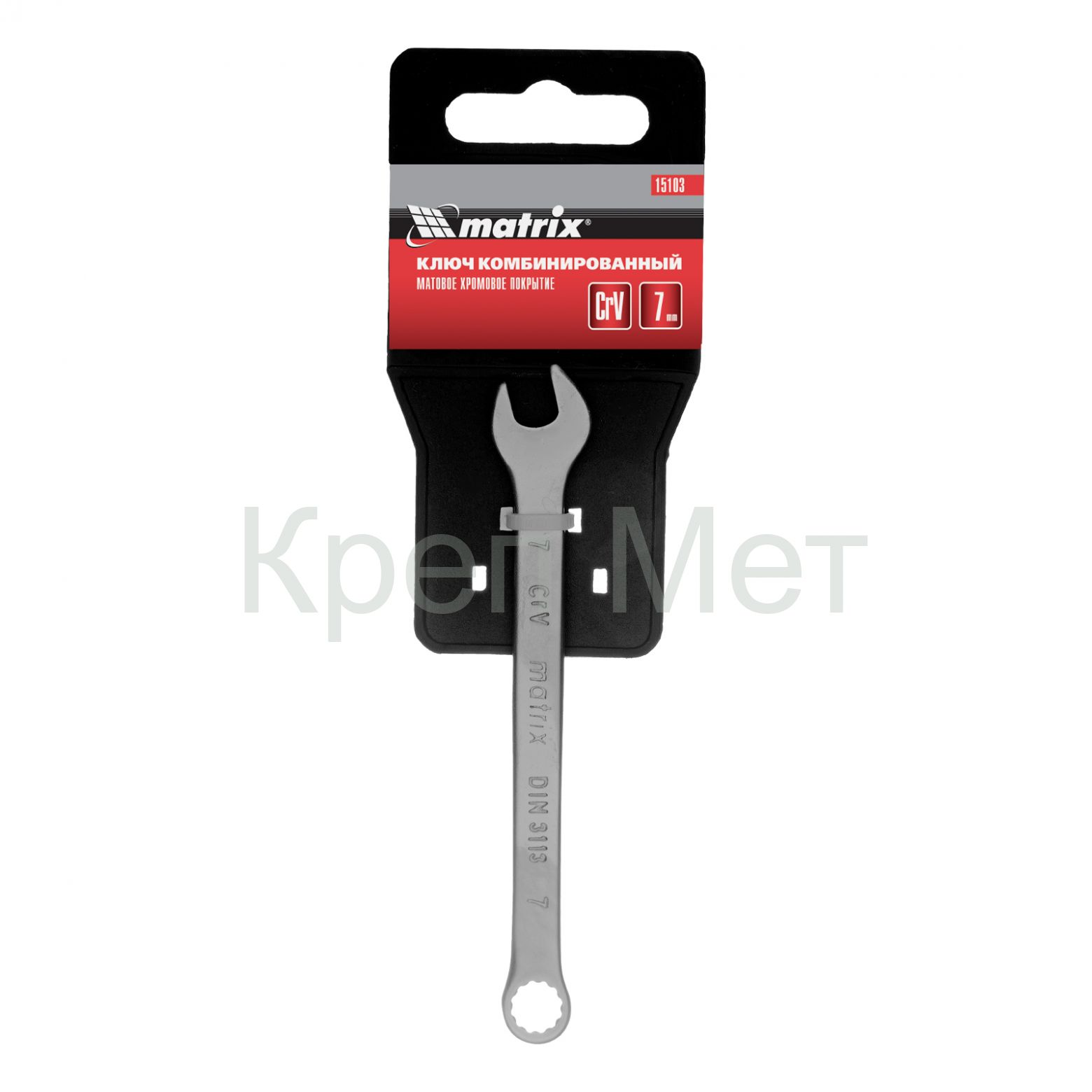Ключ комбинированный, 7 мм, CrV, матовый хром Matrix
