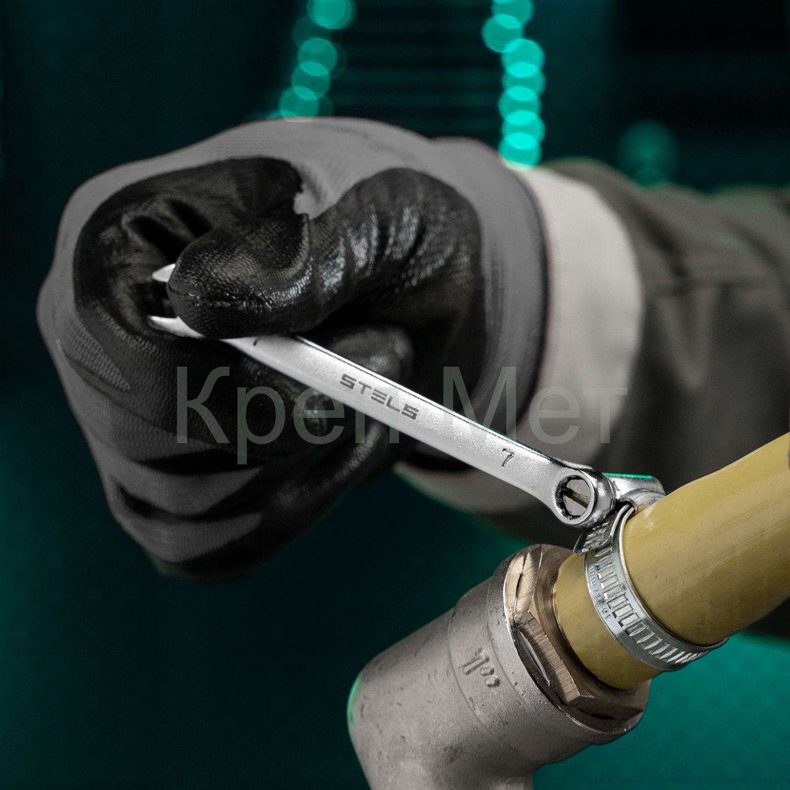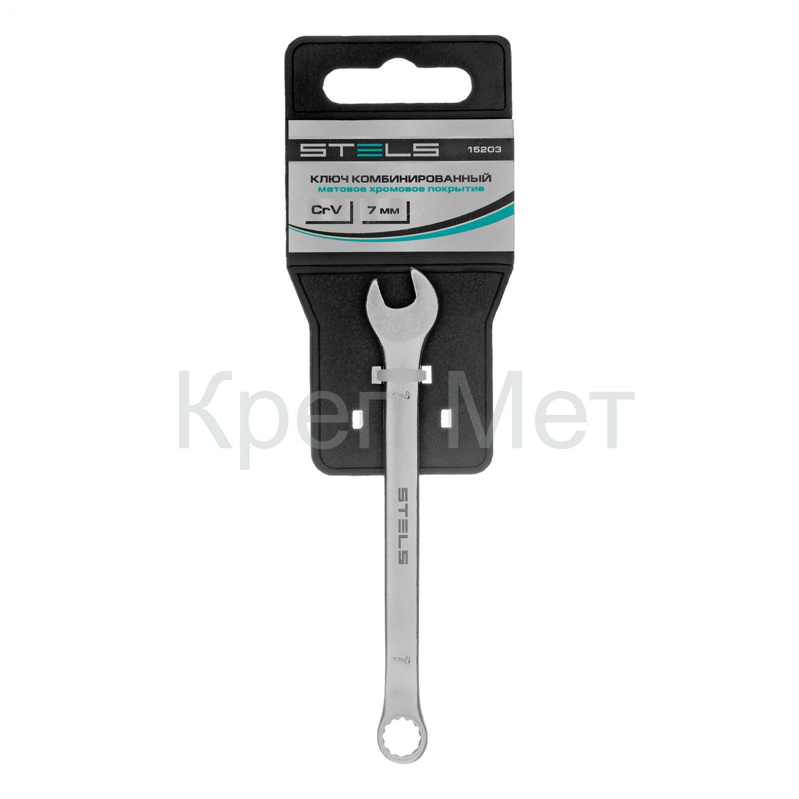 - Ключ комбинированный, 7 мм, CrV, матовый хром Stels