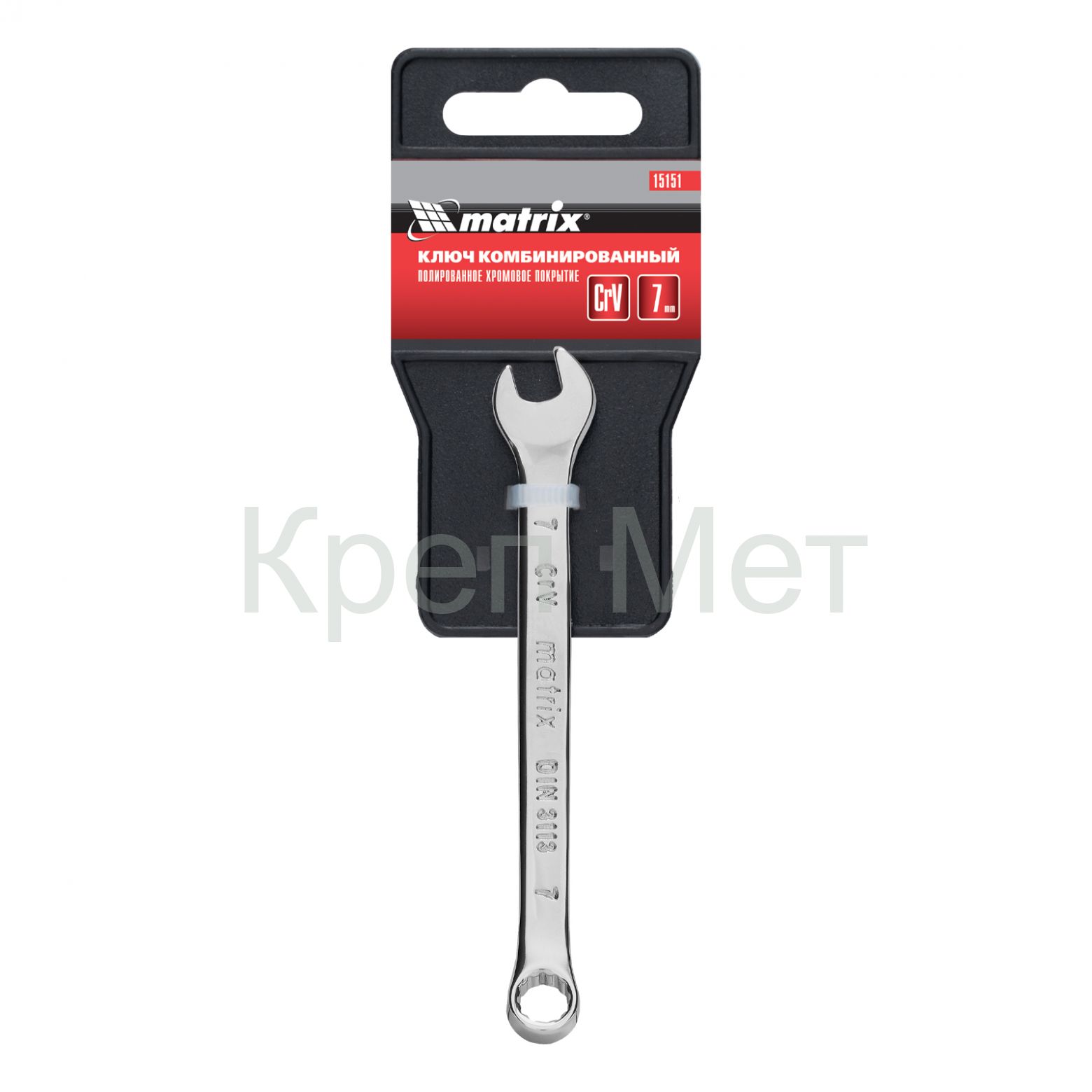 - Ключ комбинированный, 7 мм, CrV, полированный хром Matrix