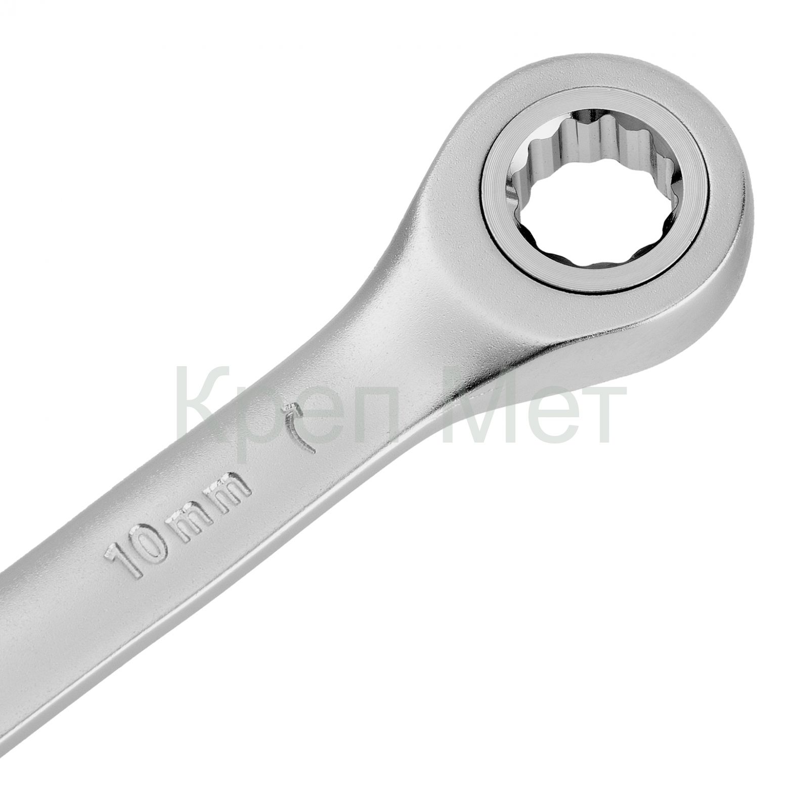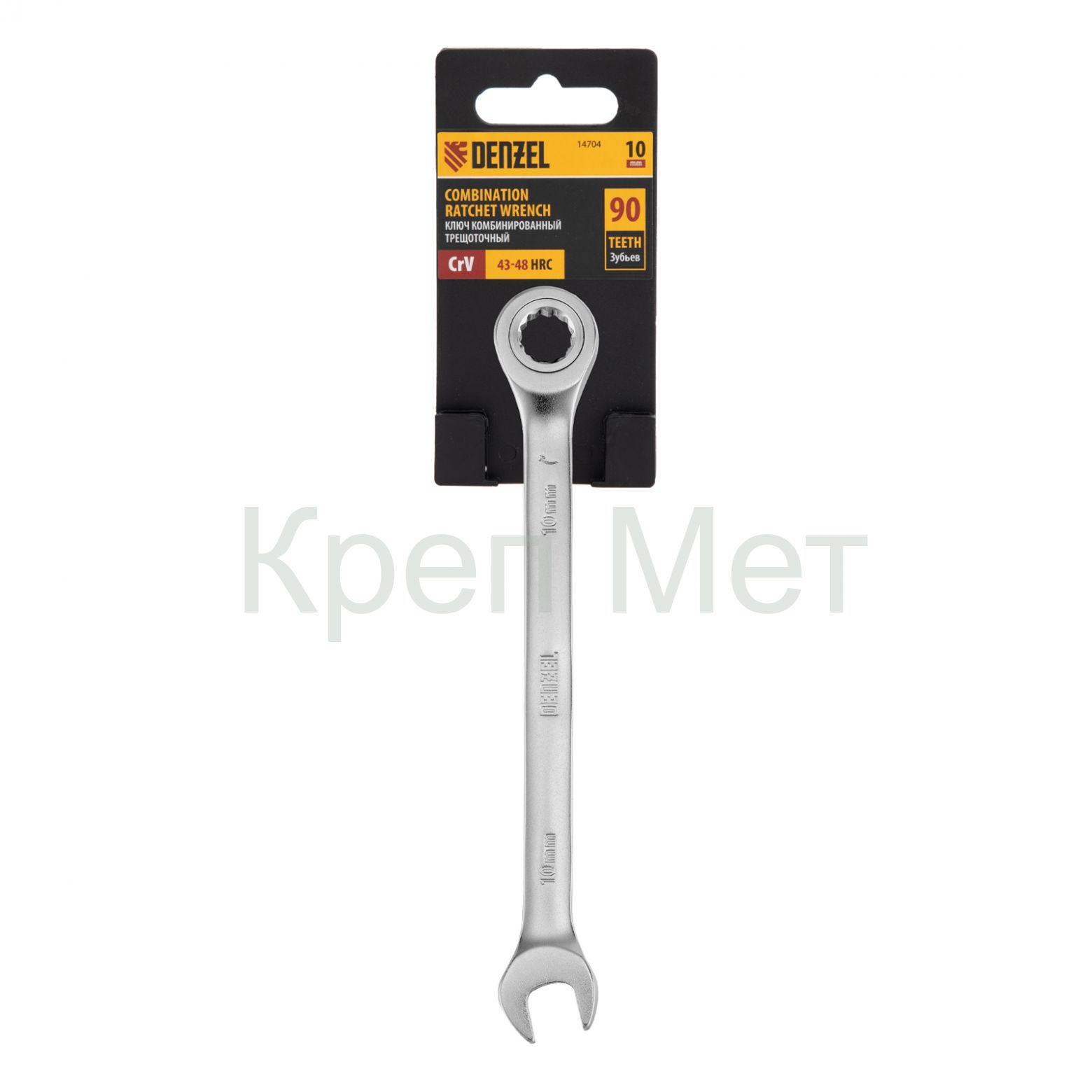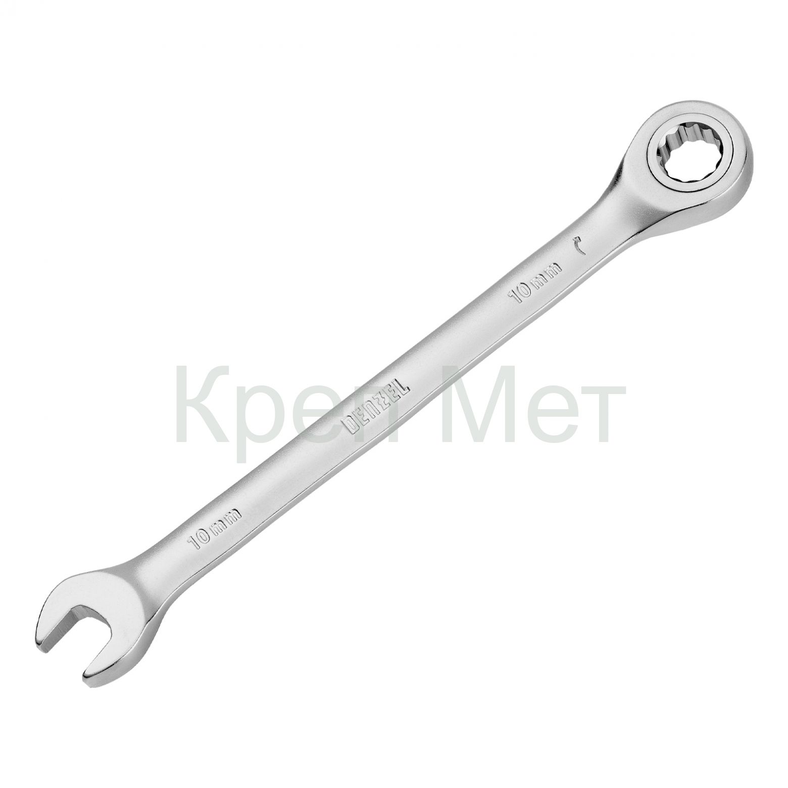 - Ключ комбинированный трещоточный, 10 мм, CrV, матовый хром Denzel