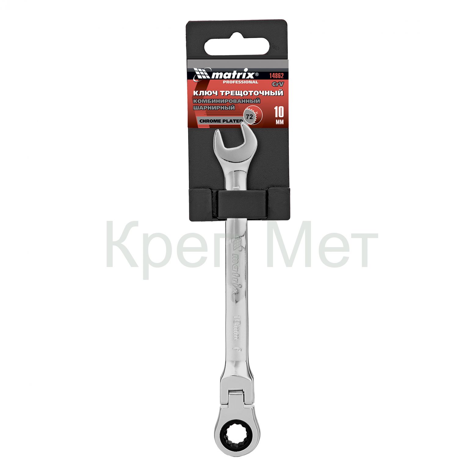- Ключ комбинированный трещоточный, 10 мм, CrV, шарнирный, зеркальный хром Matrix Professional