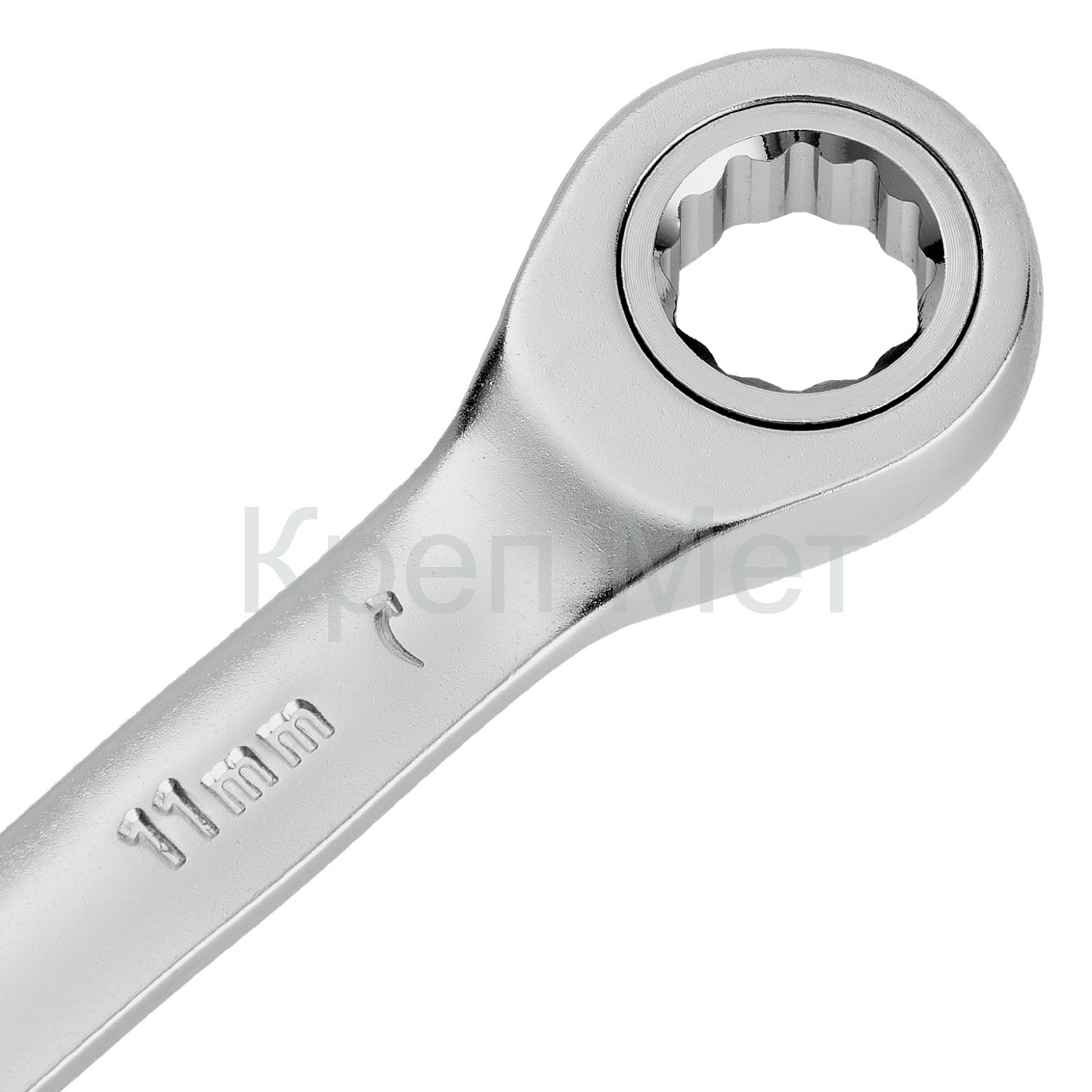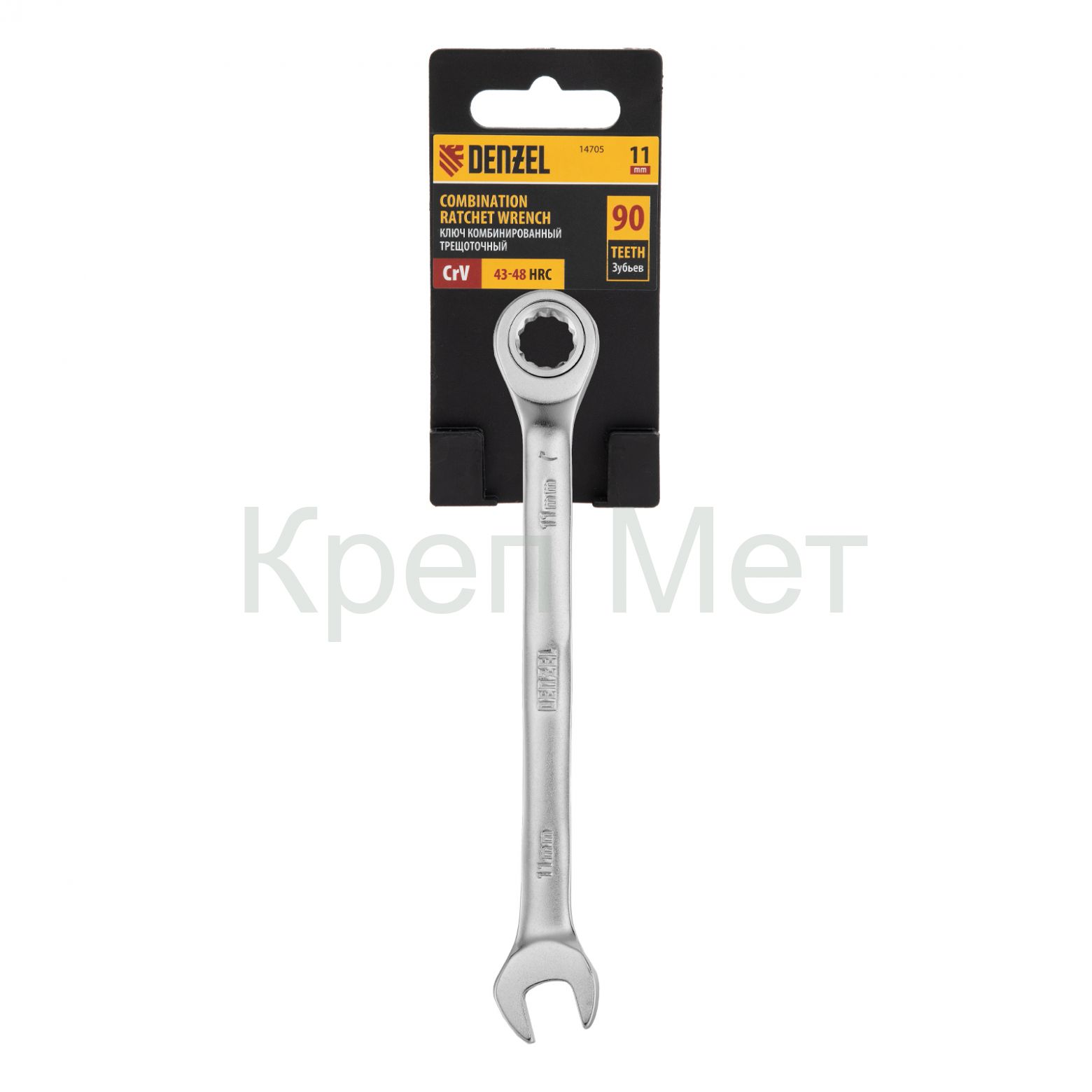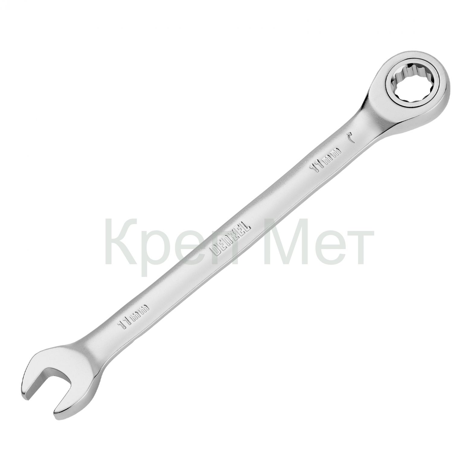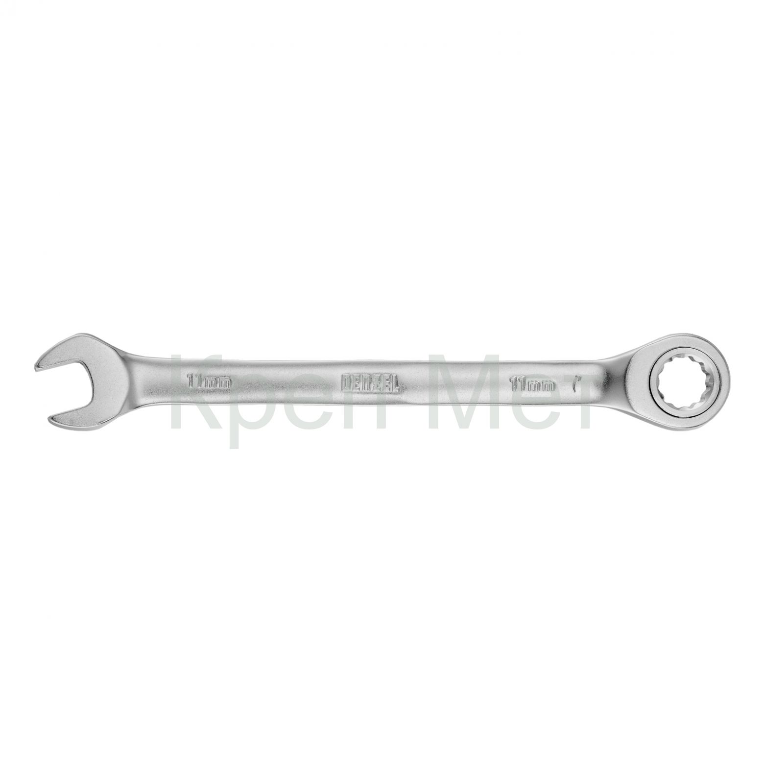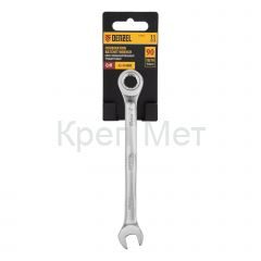 - Ключ комбинированный трещоточный, 11 мм, CrV, матовый хром Denzel