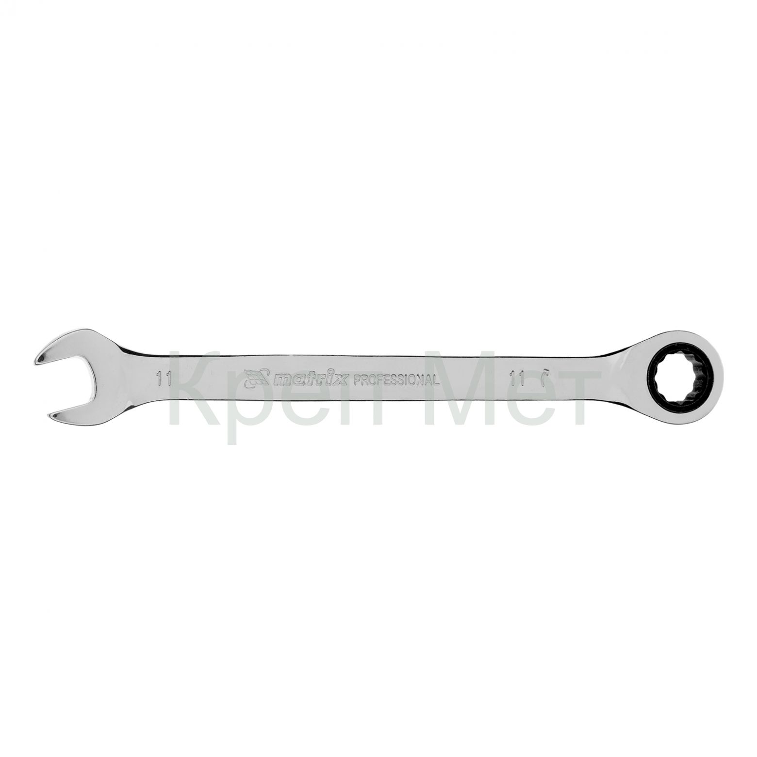 - Ключ комбинированный трещоточный, 11 мм, CrV, зеркальный хром Matrix Professional