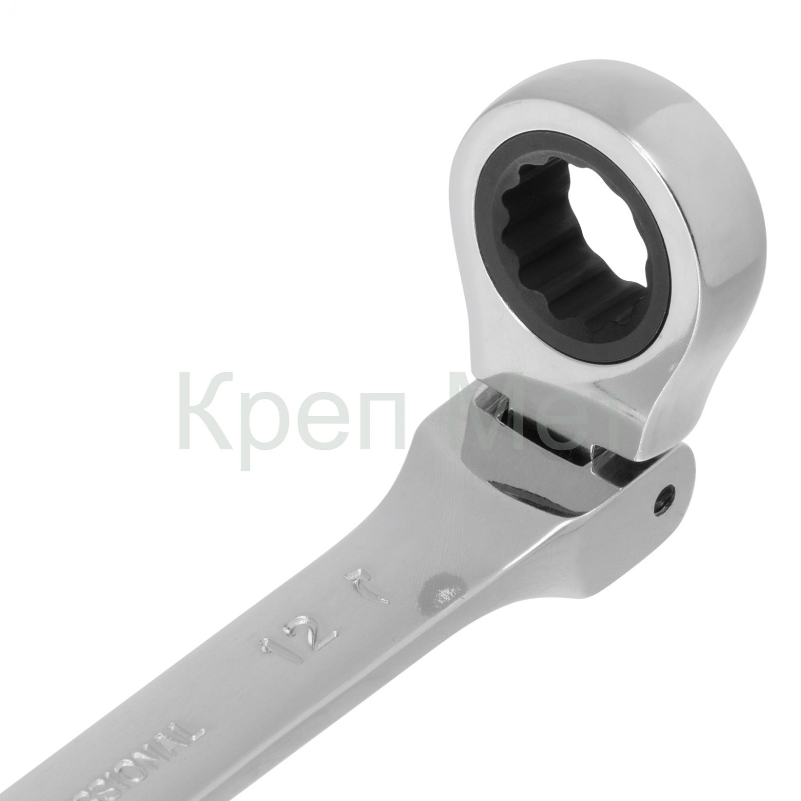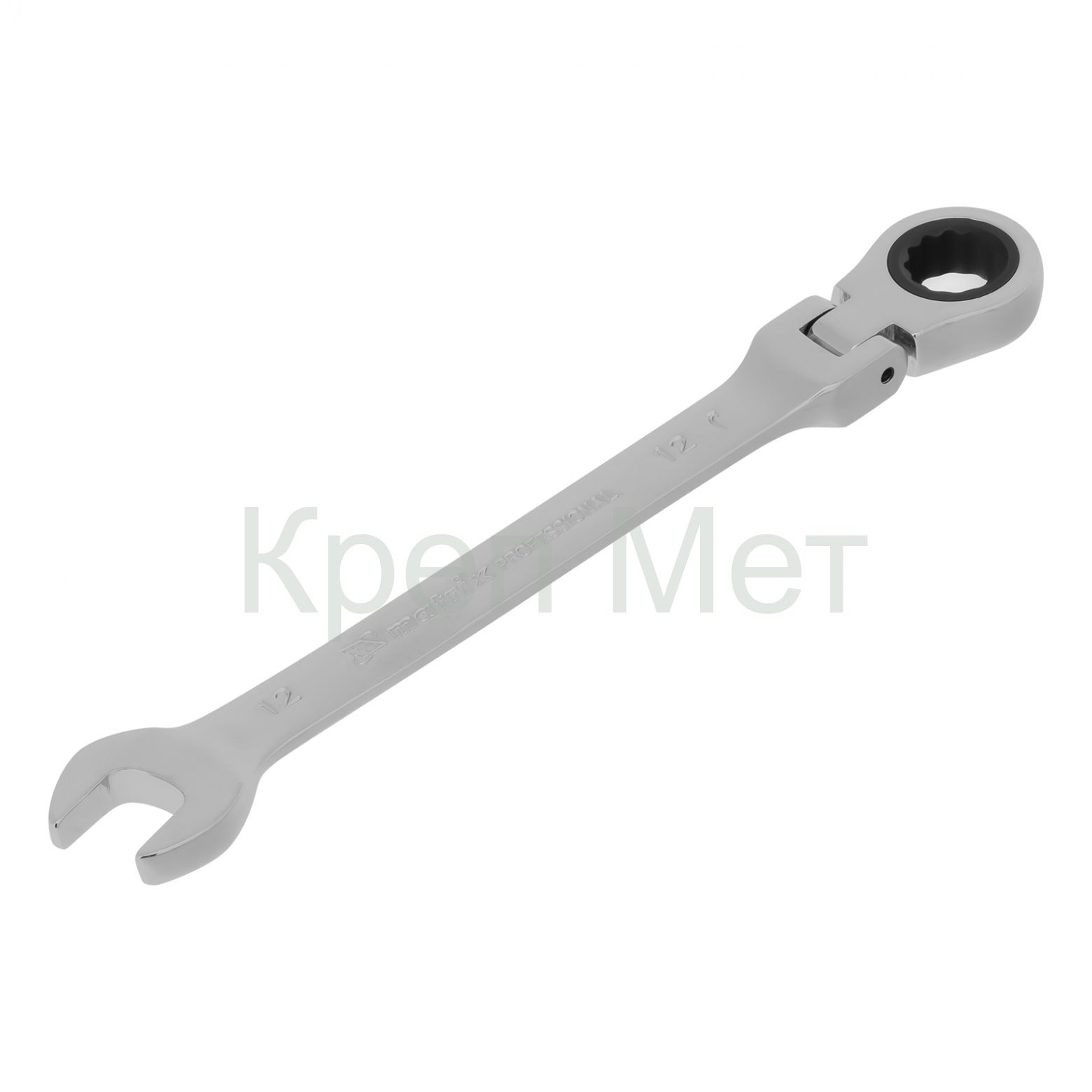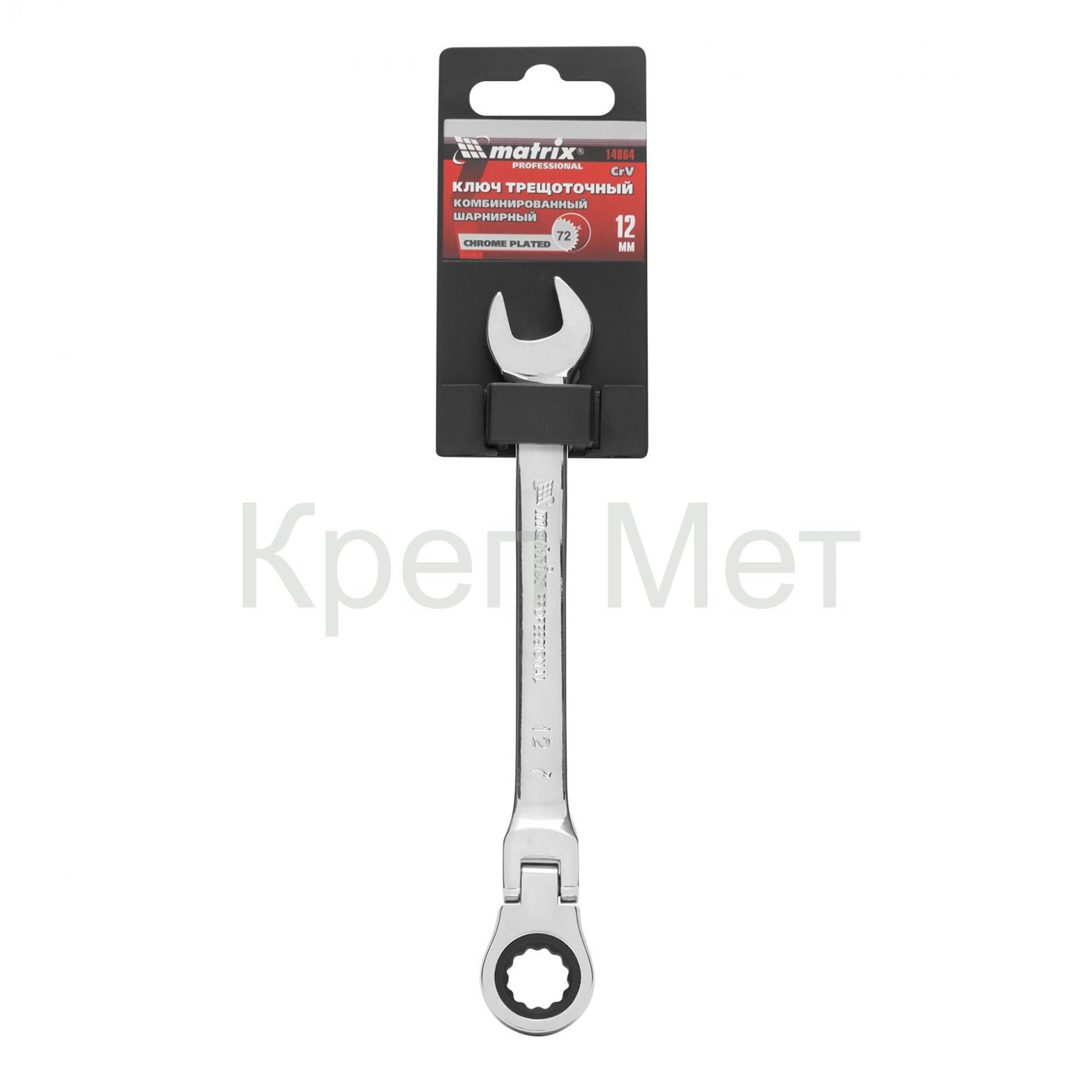 - Ключ комбинированный трещоточный, 12 мм, CrV, шарнирный, зеркальный хром Matrix Professional