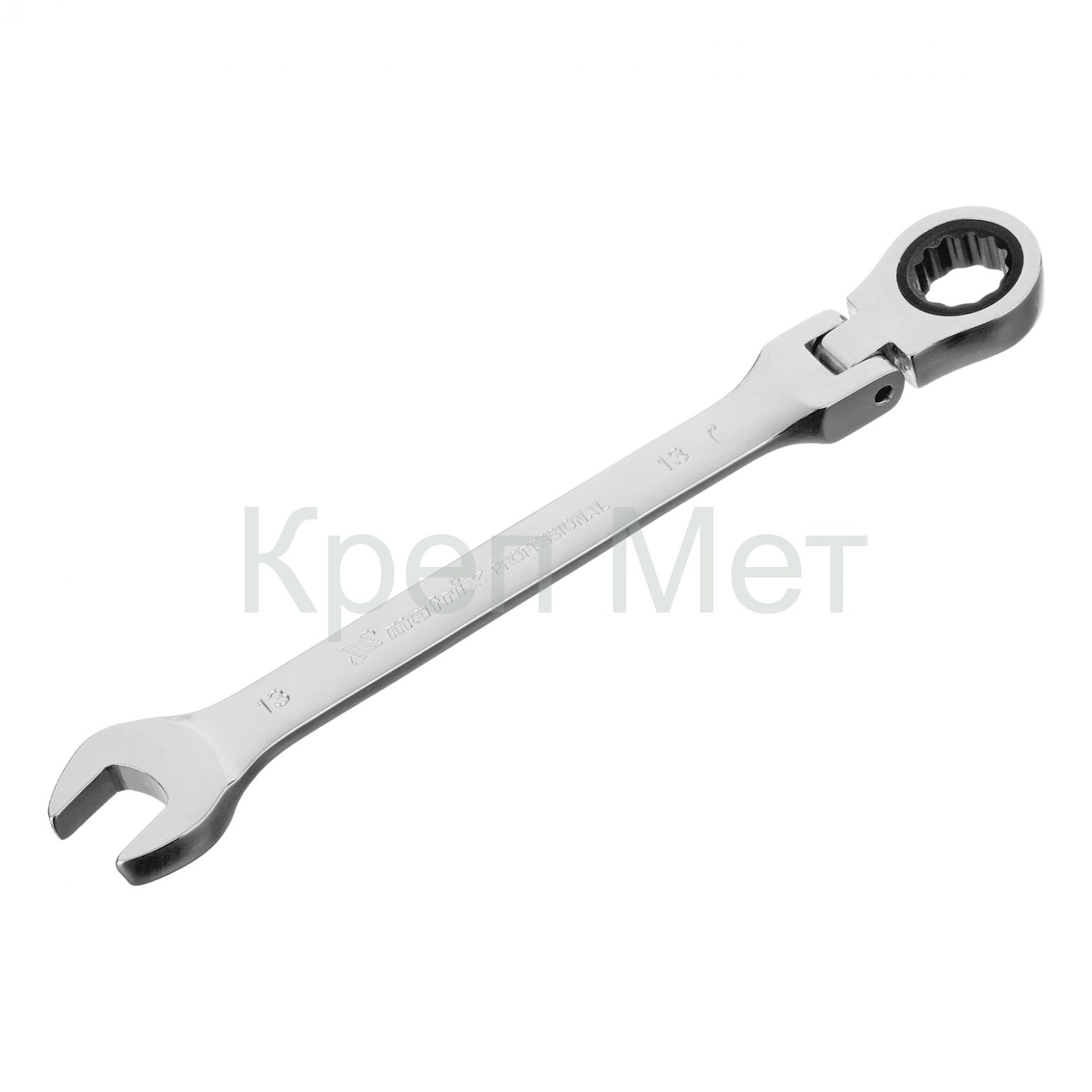 - Ключ комбинированный трещоточный, 13 мм, CrV, шарнирный, зеркальный хром Matrix Professional