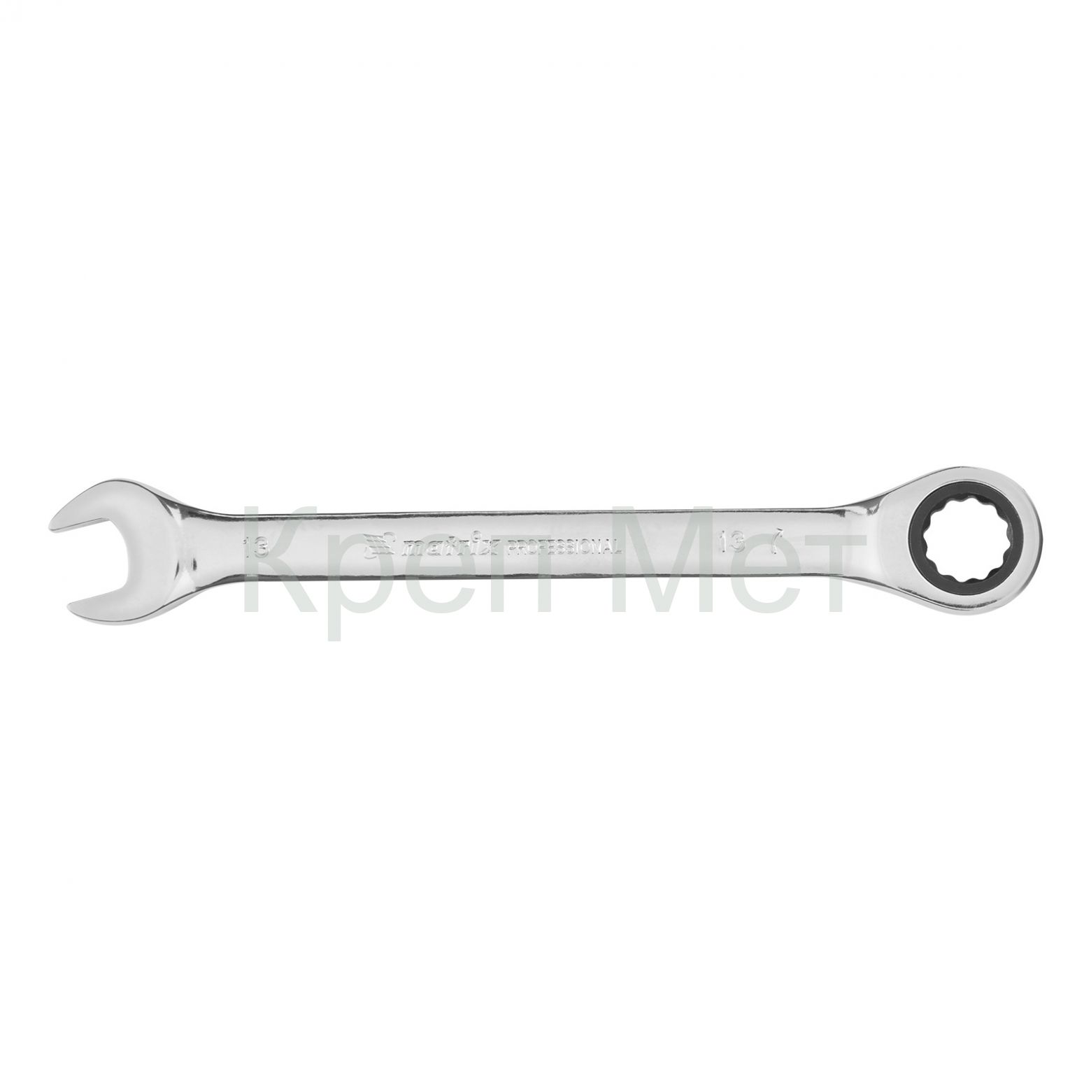 Ключ комбинированный трещоточный, 13 мм, CrV, зеркальный хром Matrix Professional