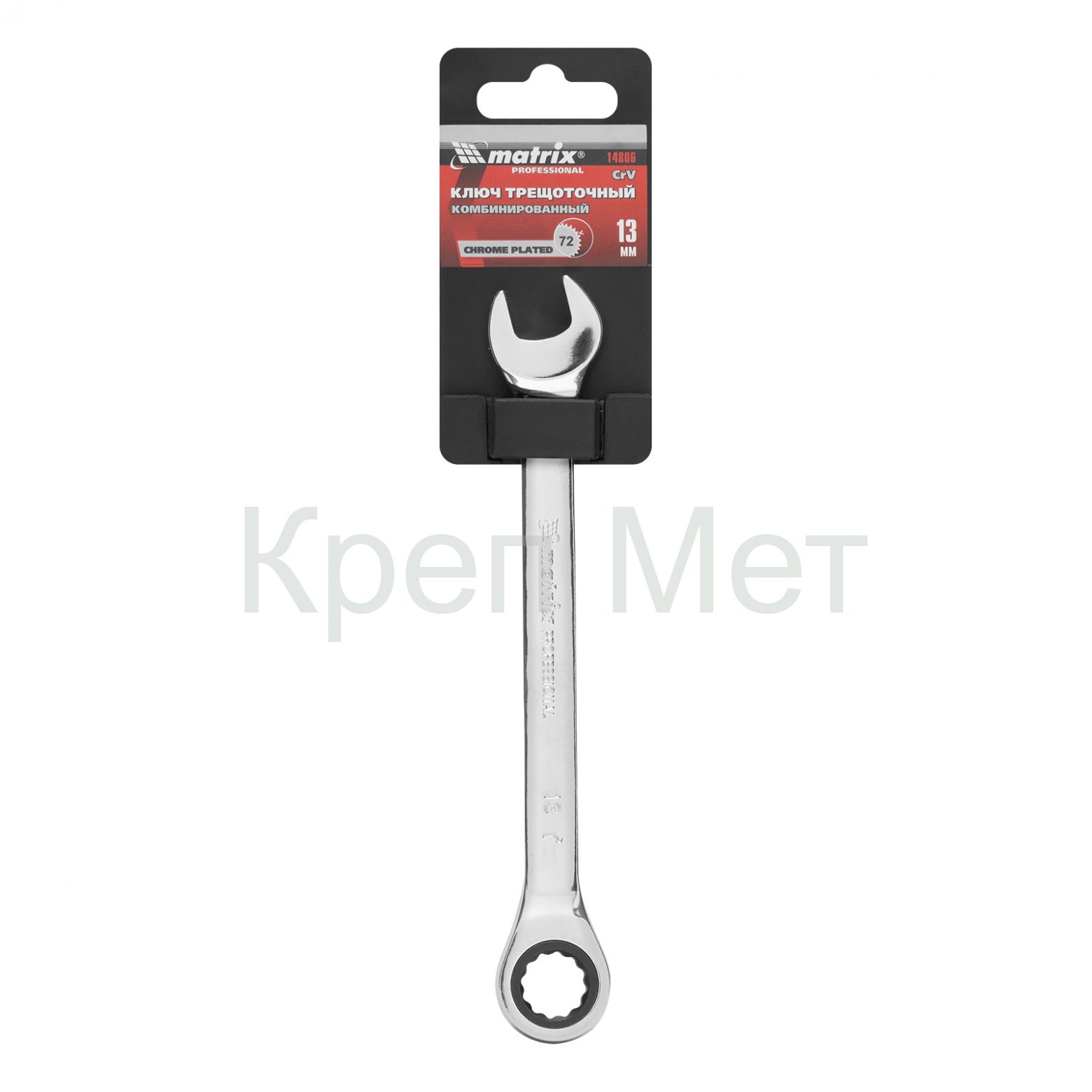 - Ключ комбинированный трещоточный, 13 мм, CrV, зеркальный хром Matrix Professional