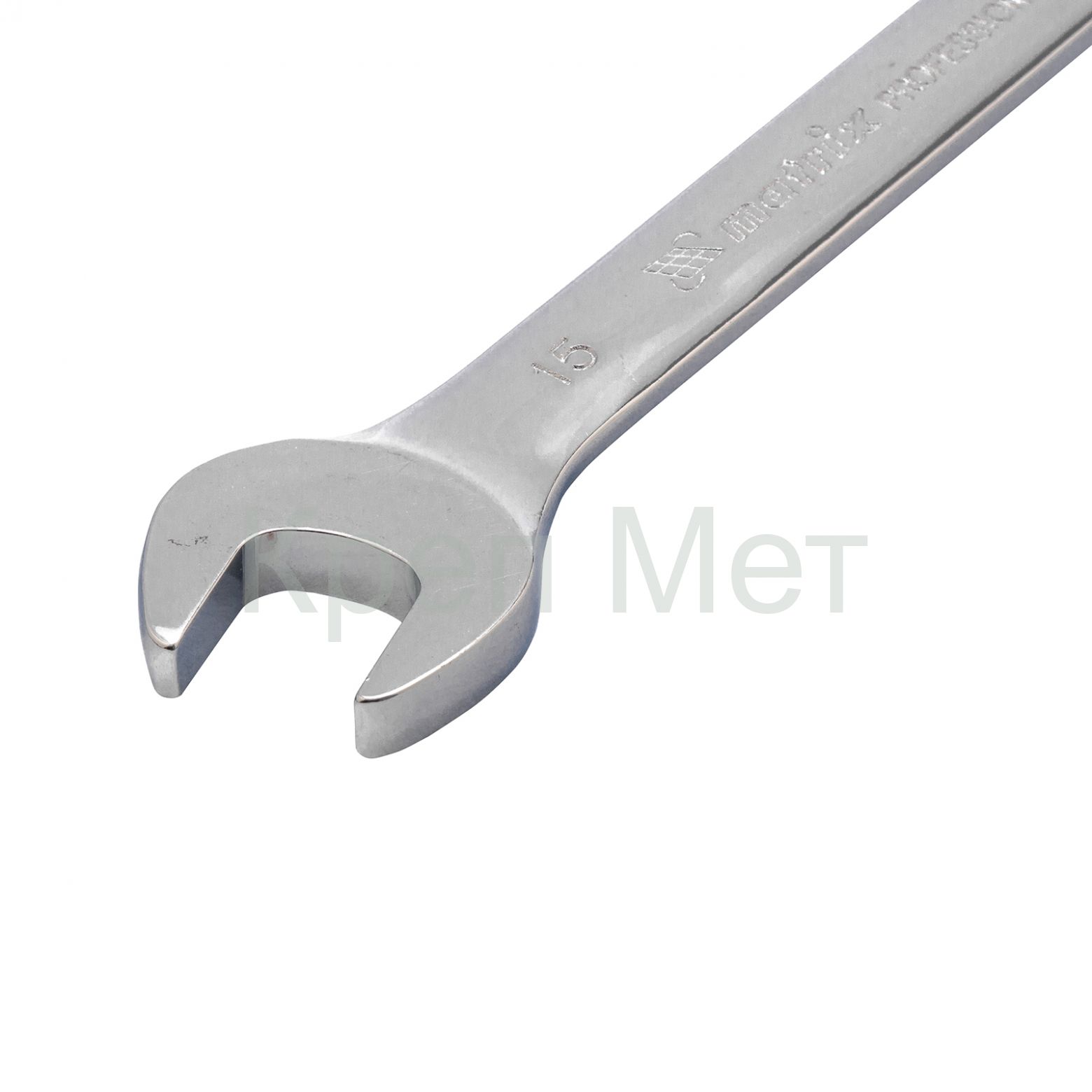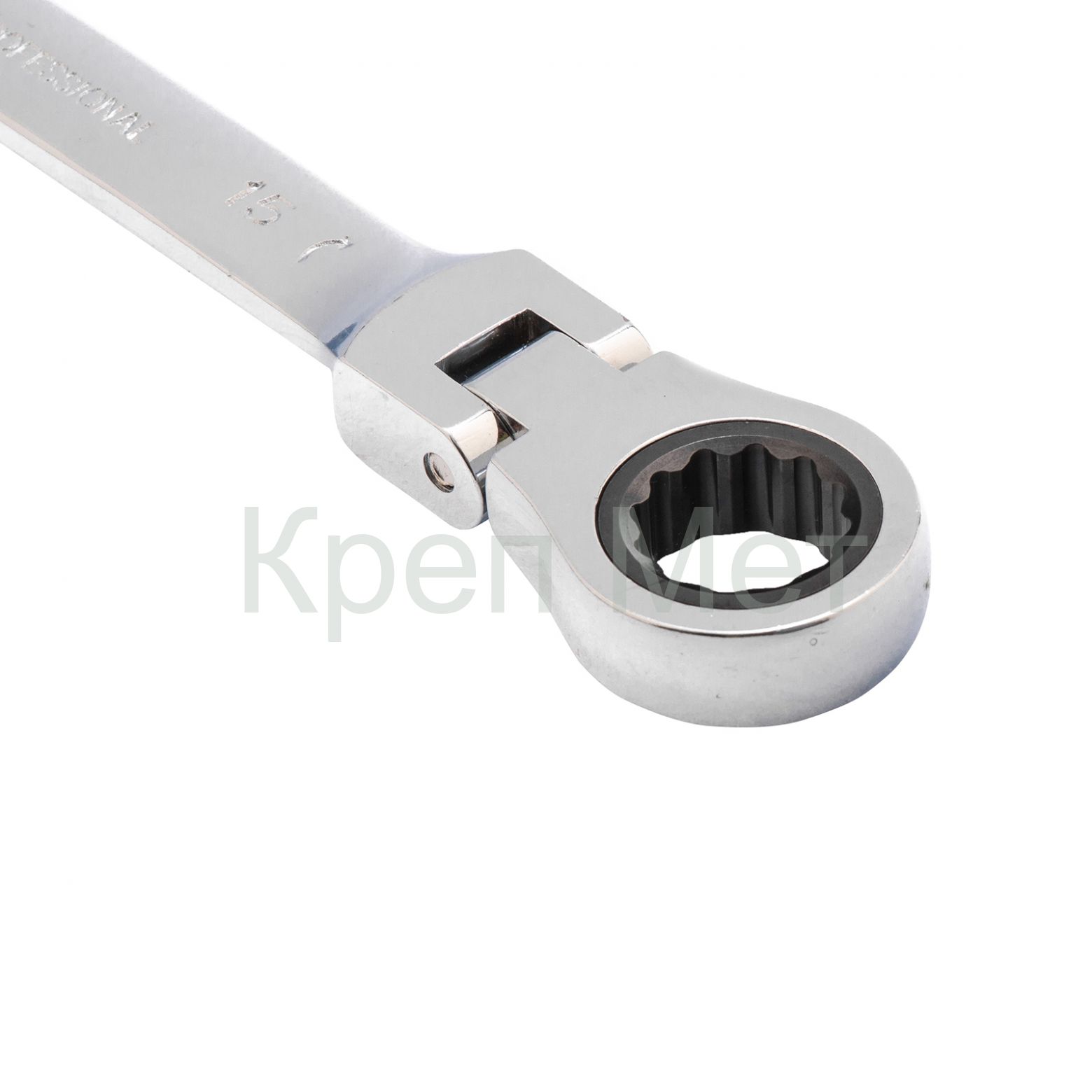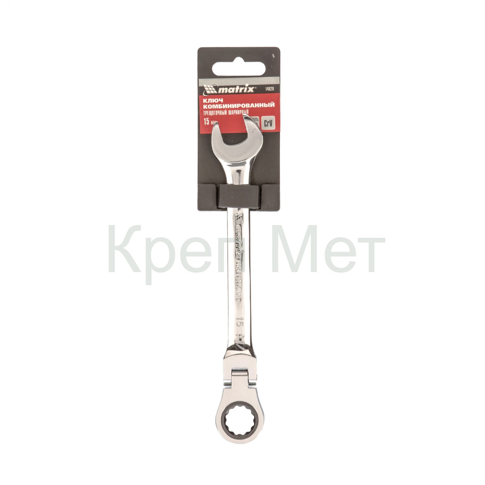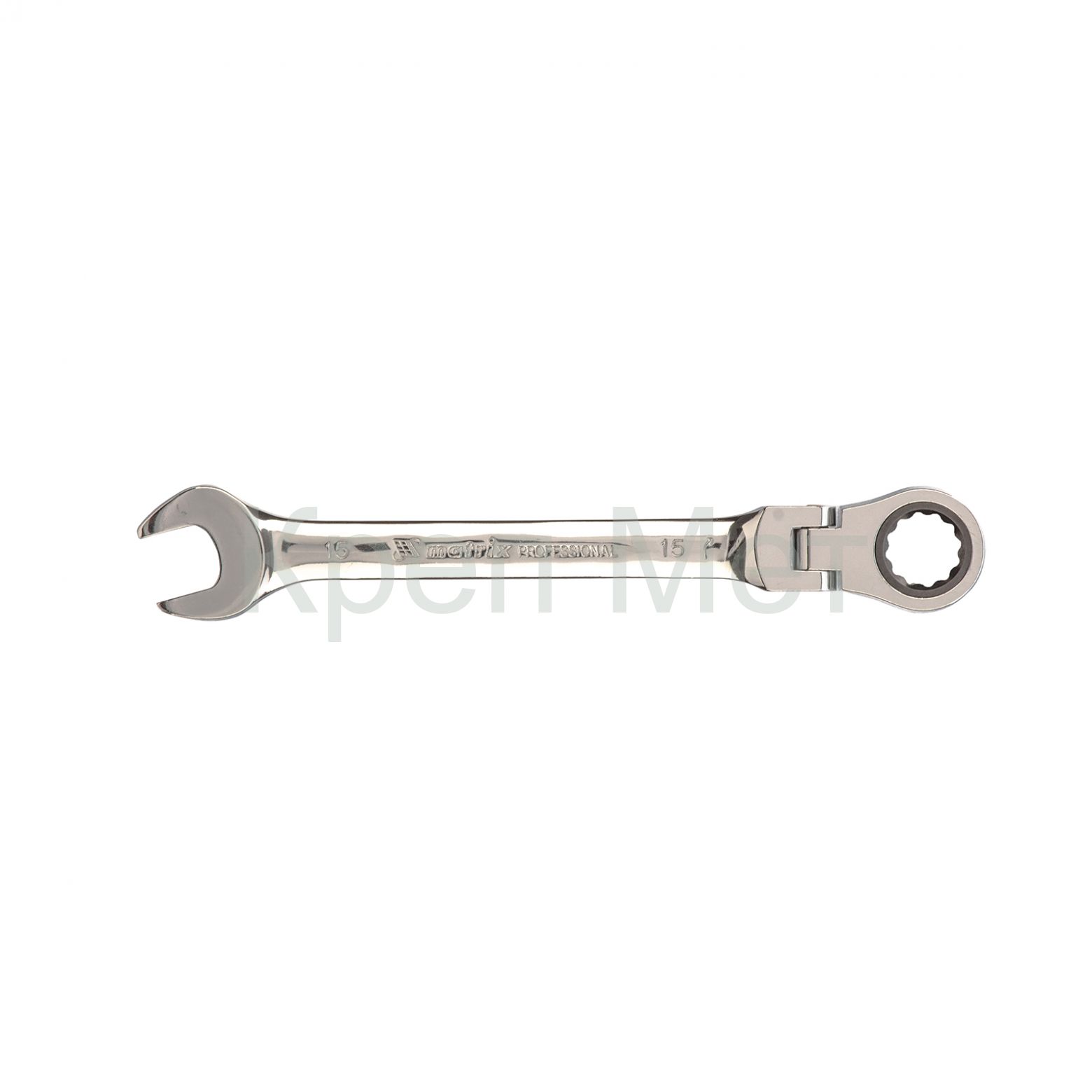 - Ключ комбинированный трещоточный, 15 мм, CrV, шарнирный, зеркальный хром Matrix