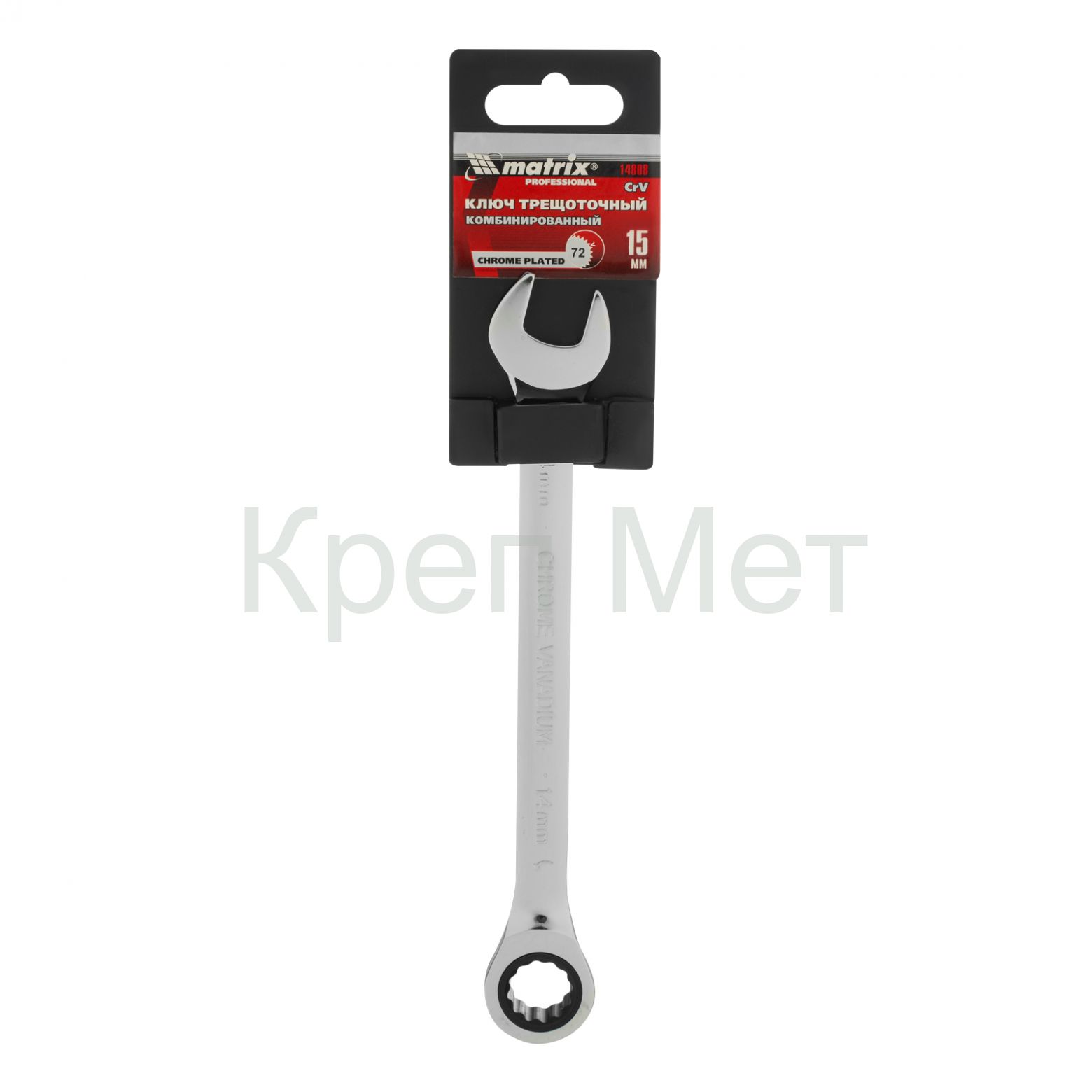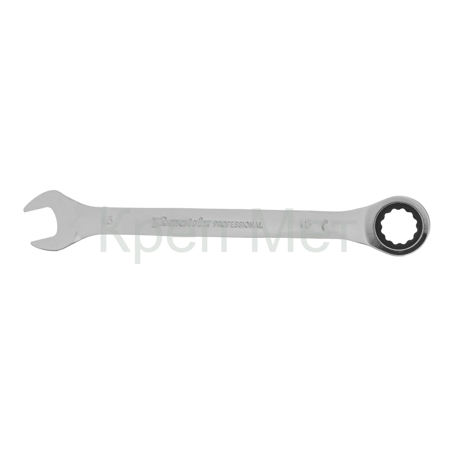 Ключ комбинированный трещоточный, 15 мм, CrV, зеркальный хром Matrix Professional