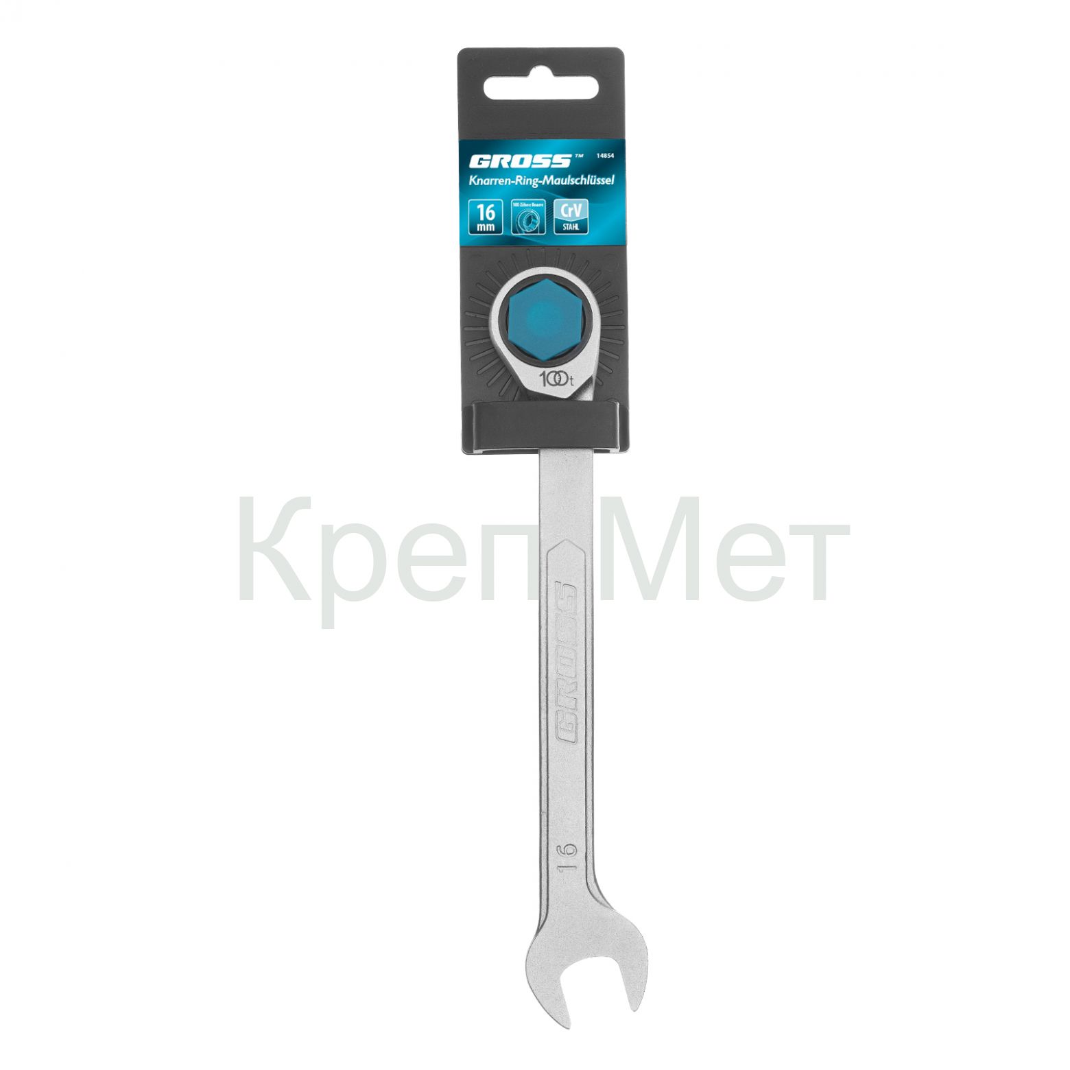 - Ключ комбинированный трещоточный, 16 мм, количество зубьев 100 Gross