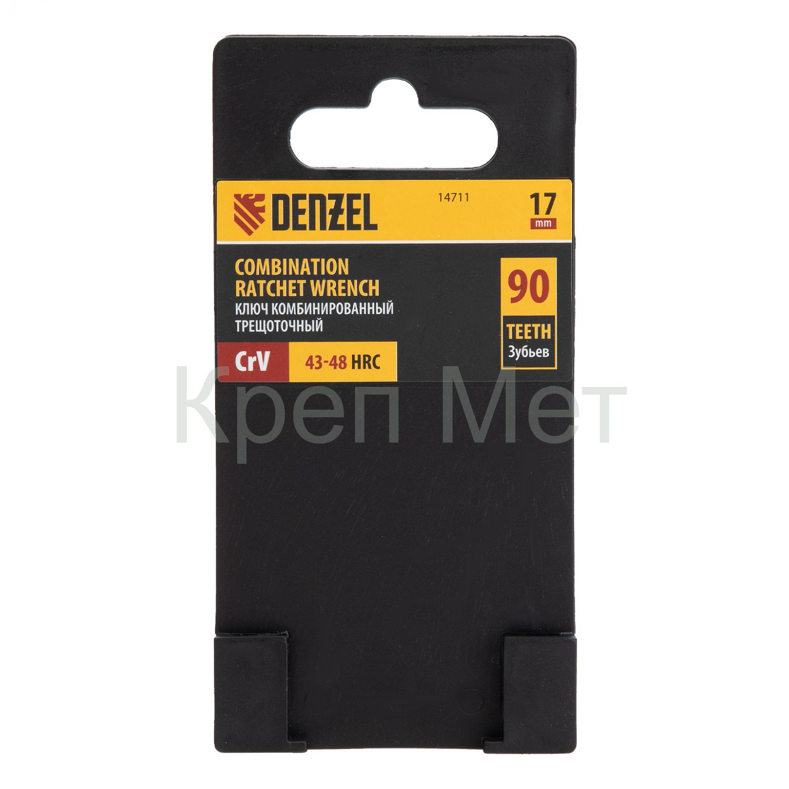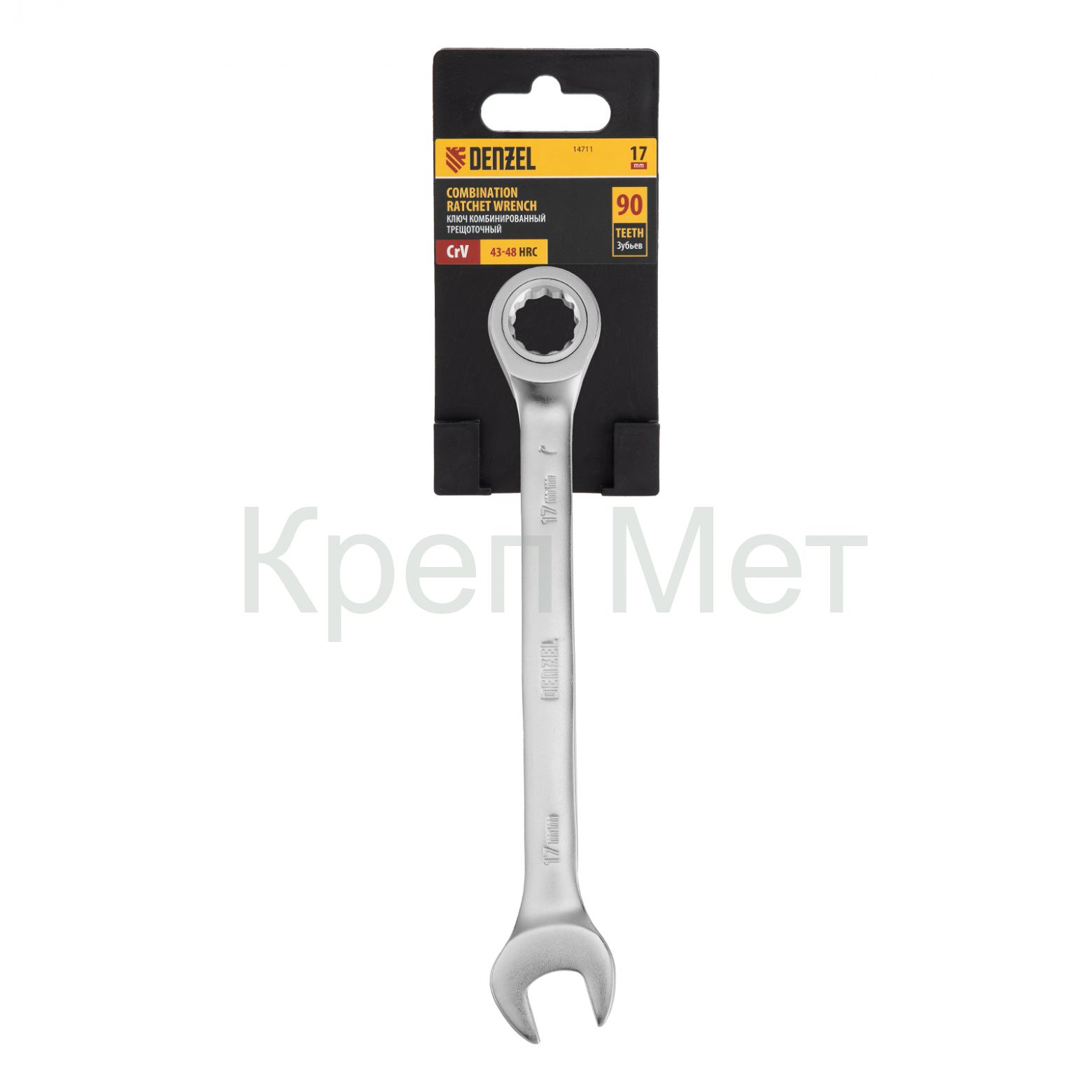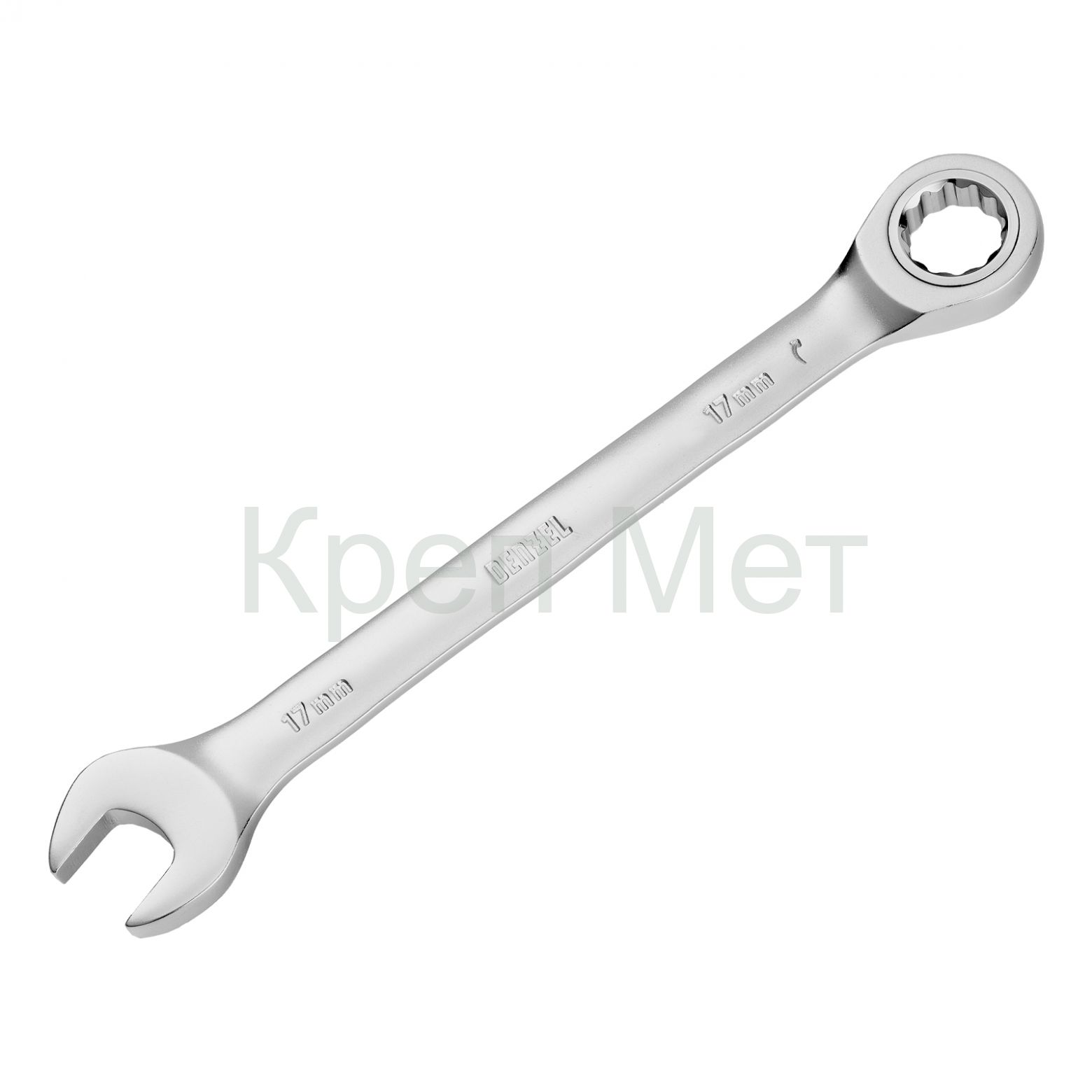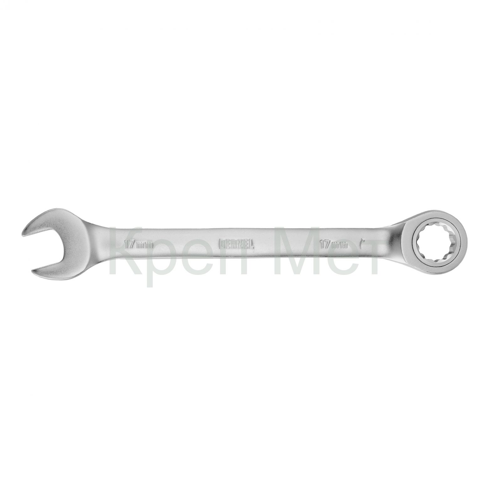 Ключ комбинированный трещоточный, 17 мм, CrV, матовый хром Denzel