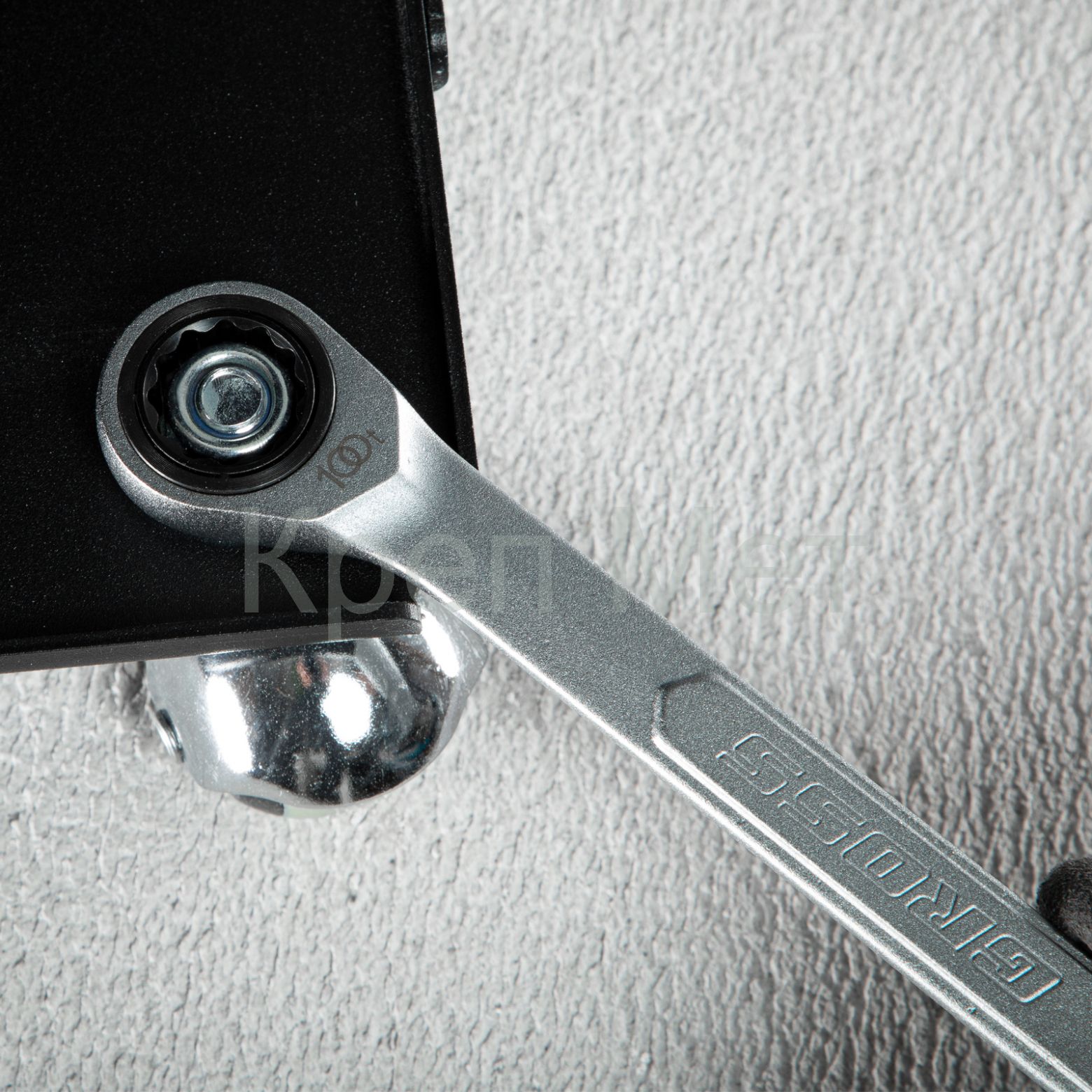 - Храповый механизм оснащен 100 зубцами, что обеспечивает плавность хода инструмента (шаг трещотки всего 3,6 градусов) и делает его удобным для работы в ограниченном пространстве.