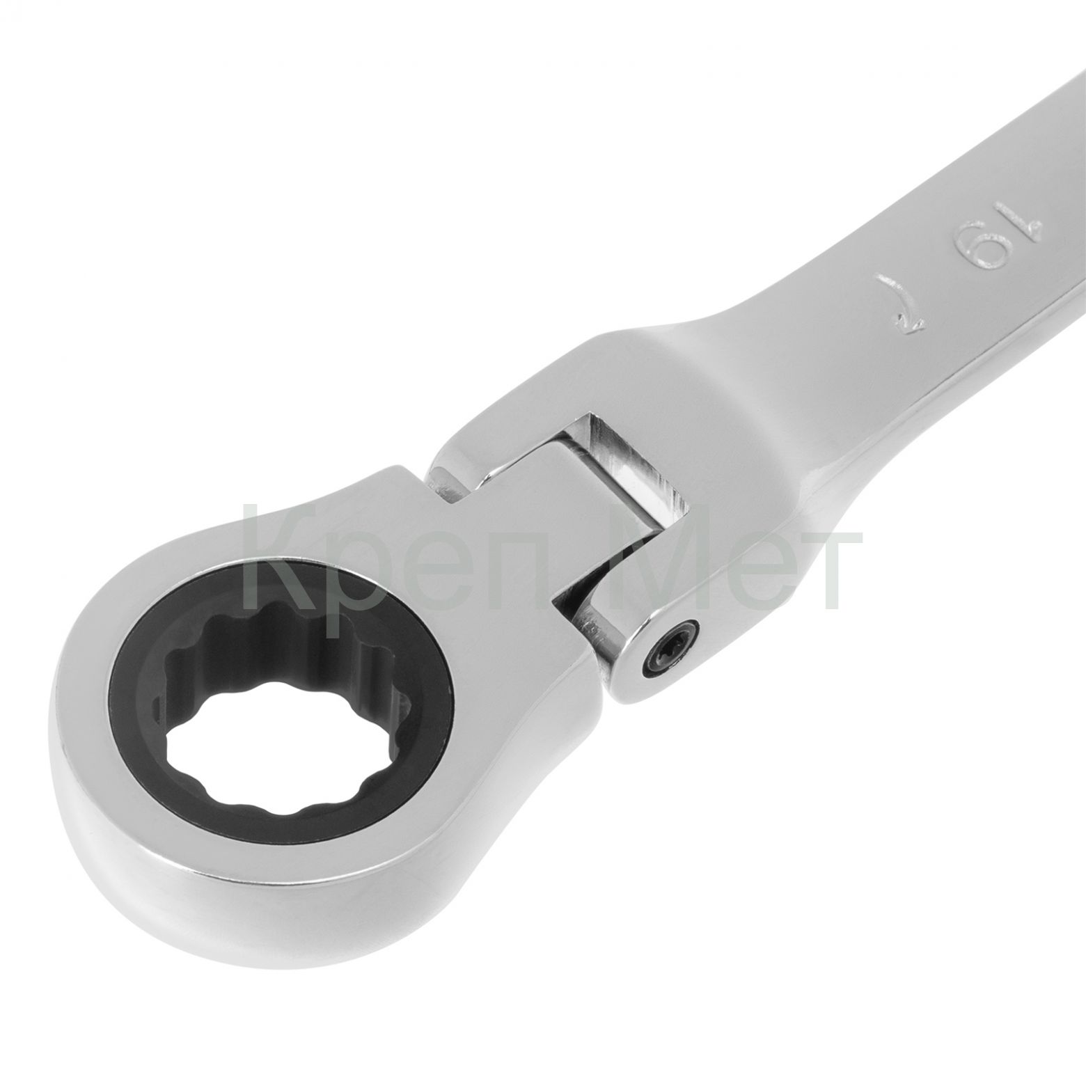 - Ключ комбинированный трещоточный, 19 мм, CrV, шарнирный, зеркальный хром Matrix Professional