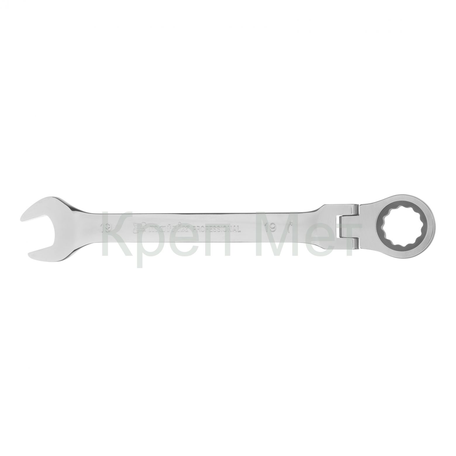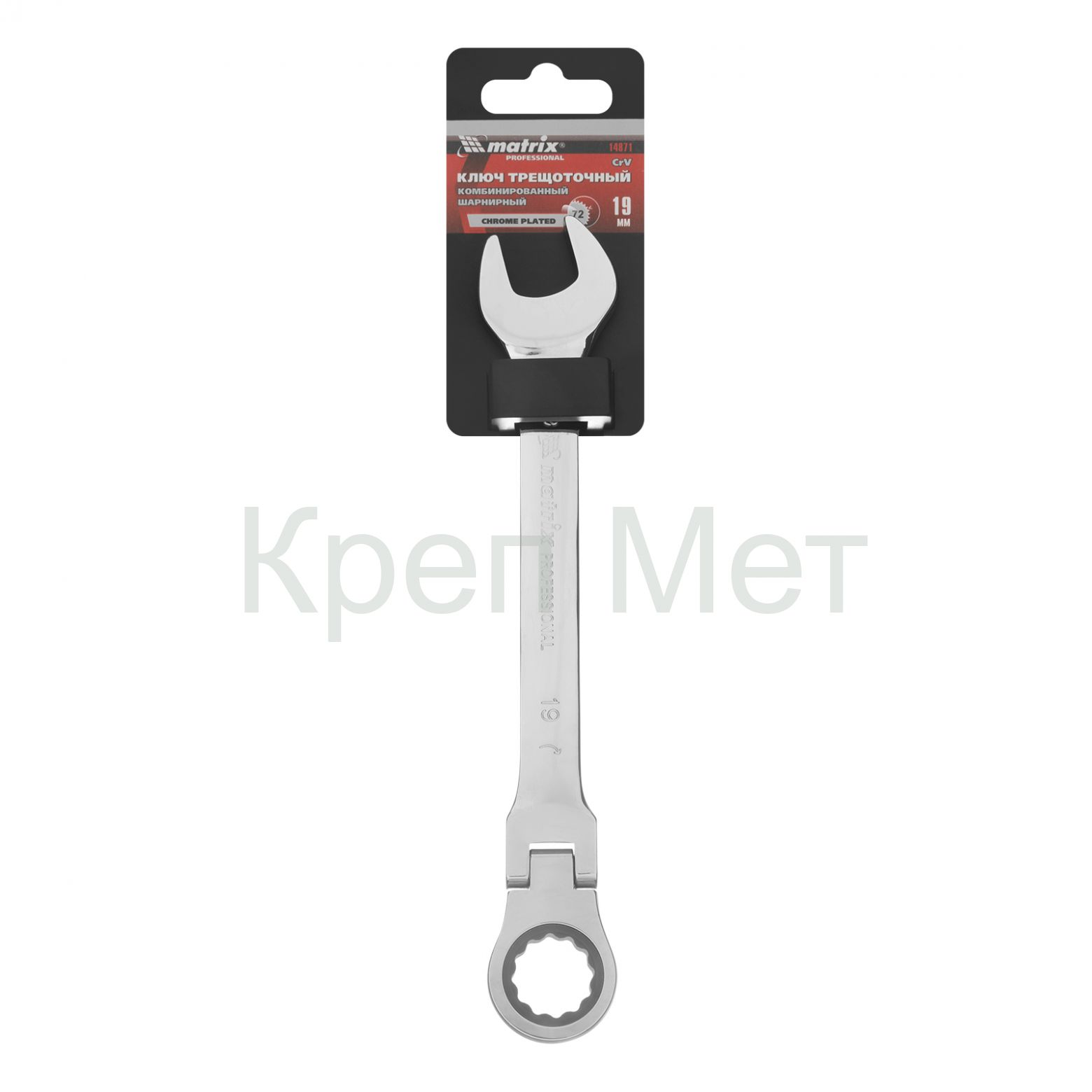 Ключ комбинированный трещоточный, 19 мм, CrV, шарнирный, зеркальный хром Matrix Professional