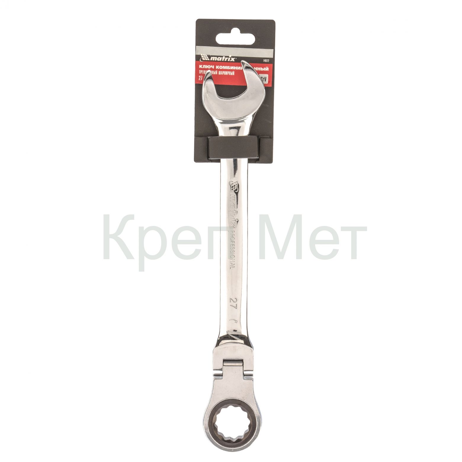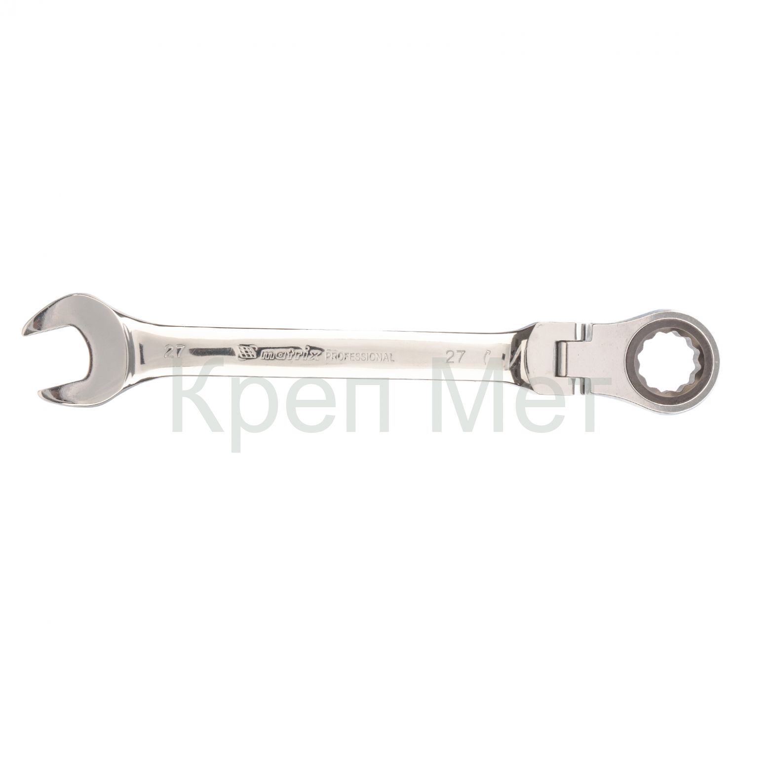Ключ комбинированный трещоточный, 27 мм, CrV, шарнирный, зеркальный хром Matrix
