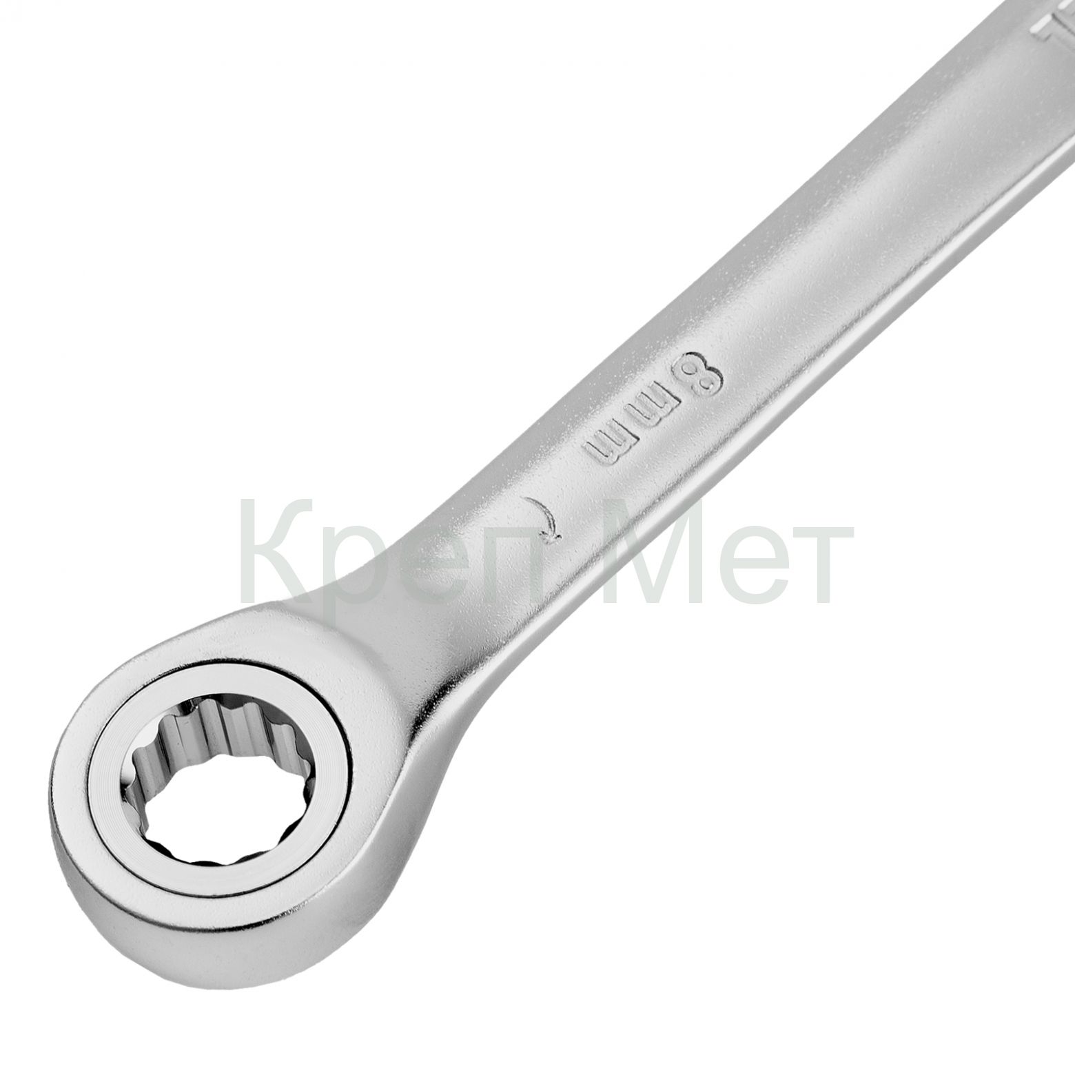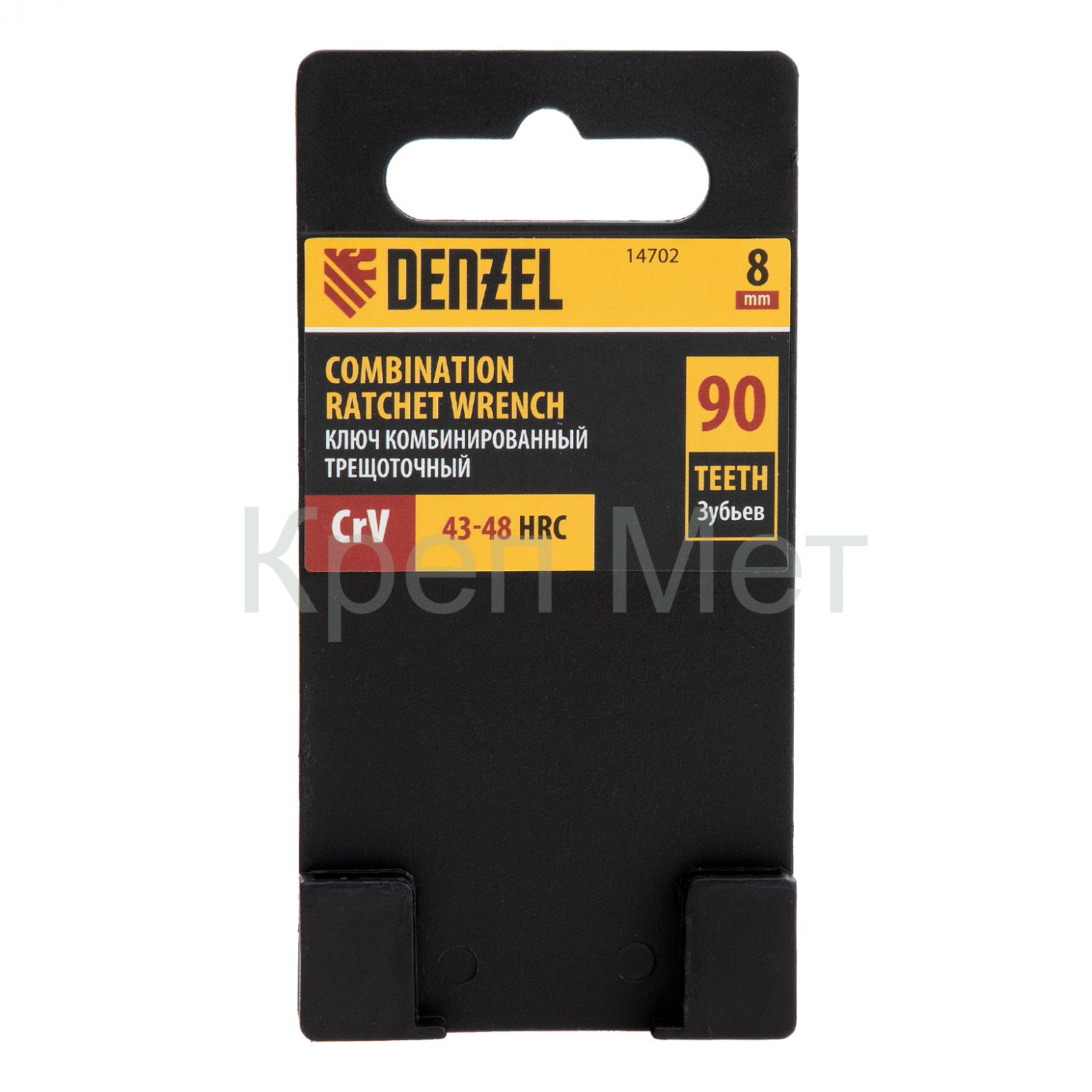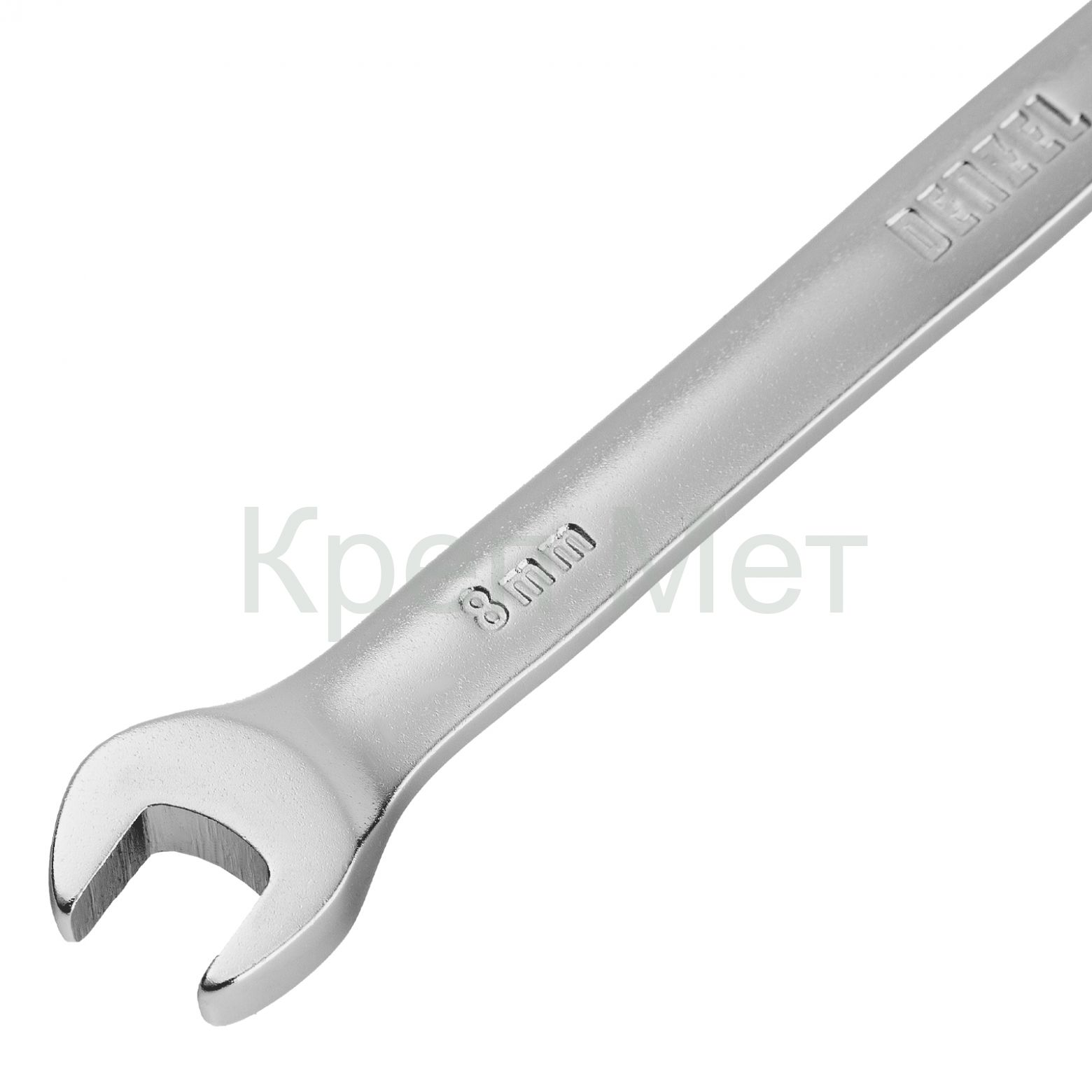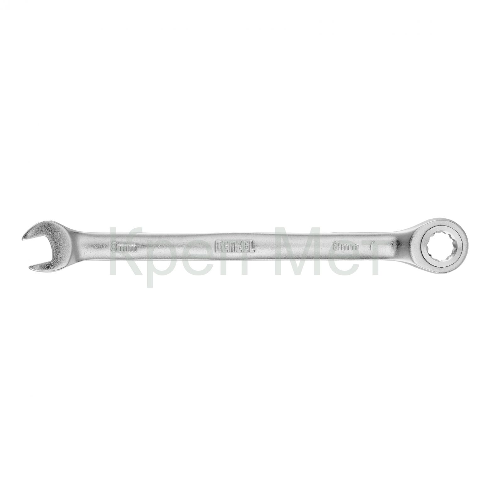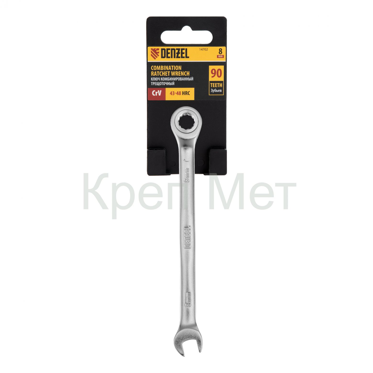 - Ключ комбинированный трещоточный, 8 мм, CrV, матовый хром Denzel