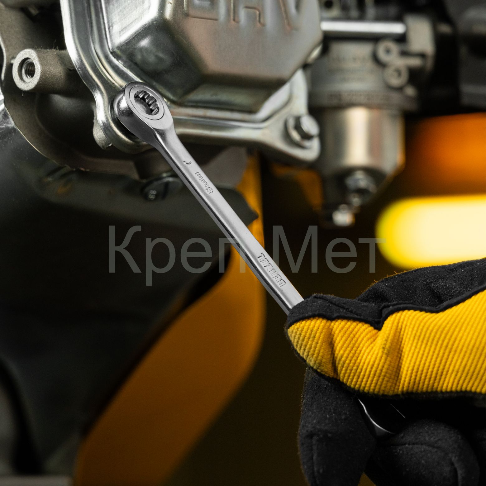- Плавное вращение — благодаря храповому механизму с 90 зубьями шаг трещотки составляет всего 4°, инструмент удобен для работы в труднодоступных местах.