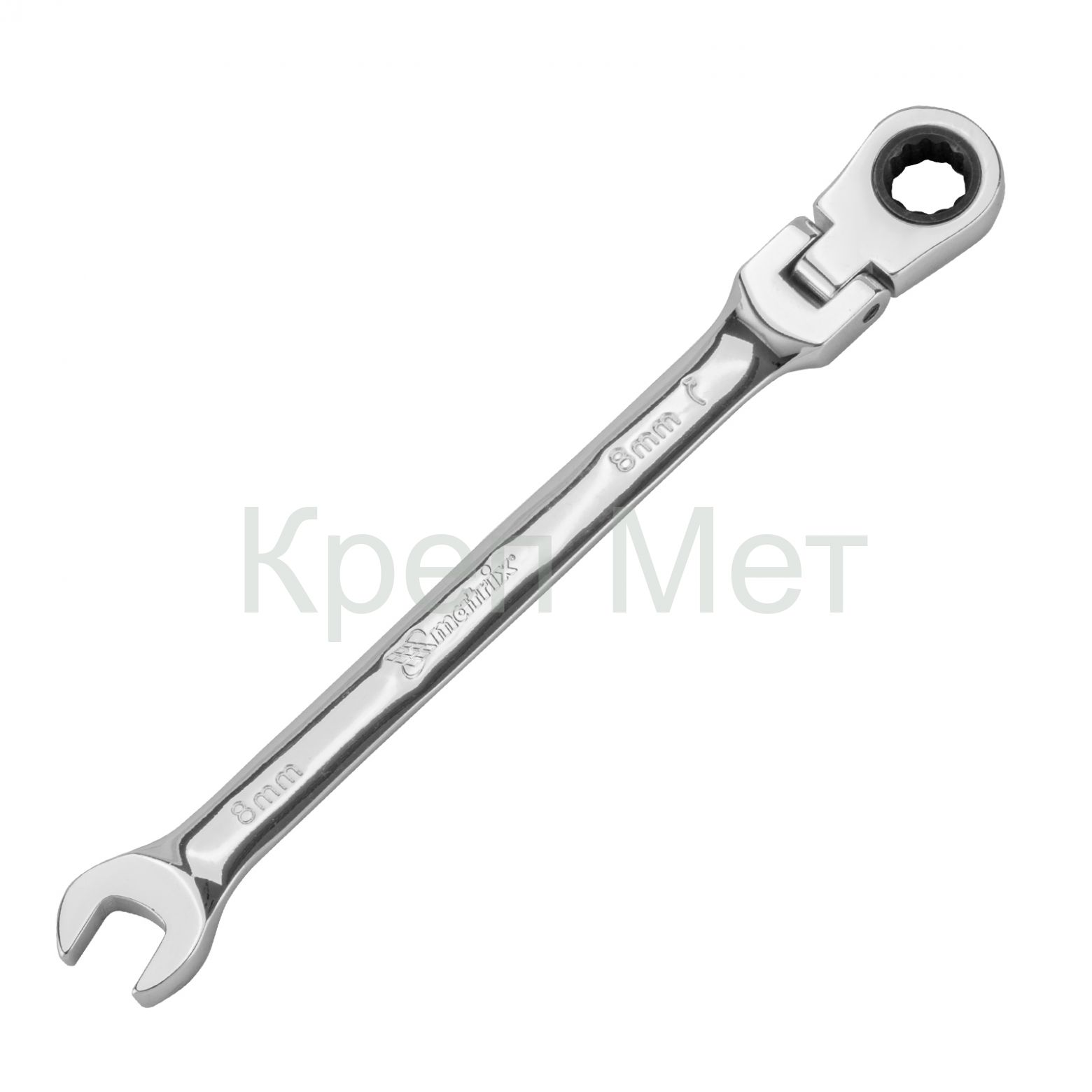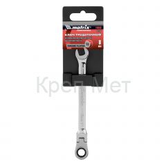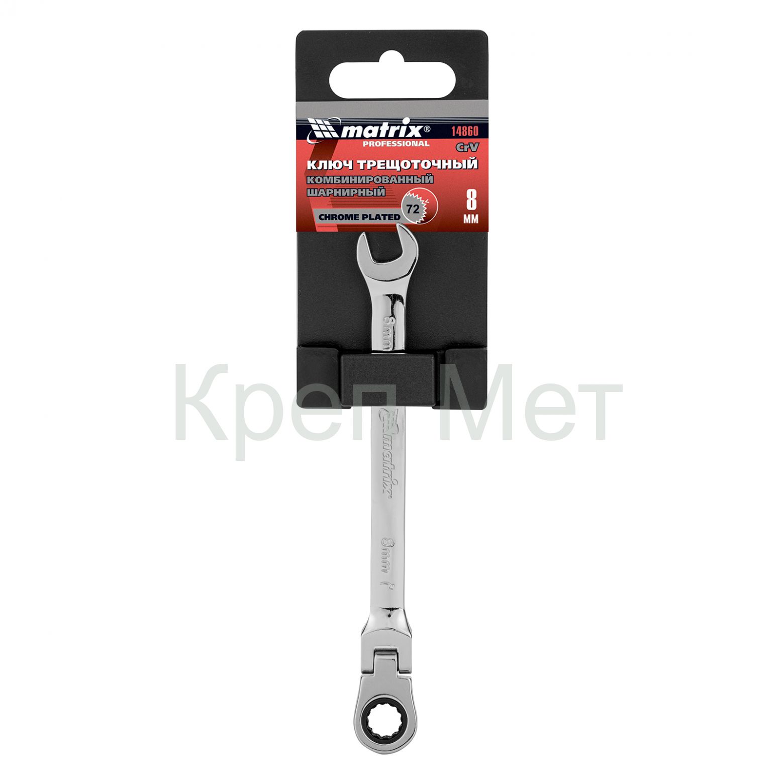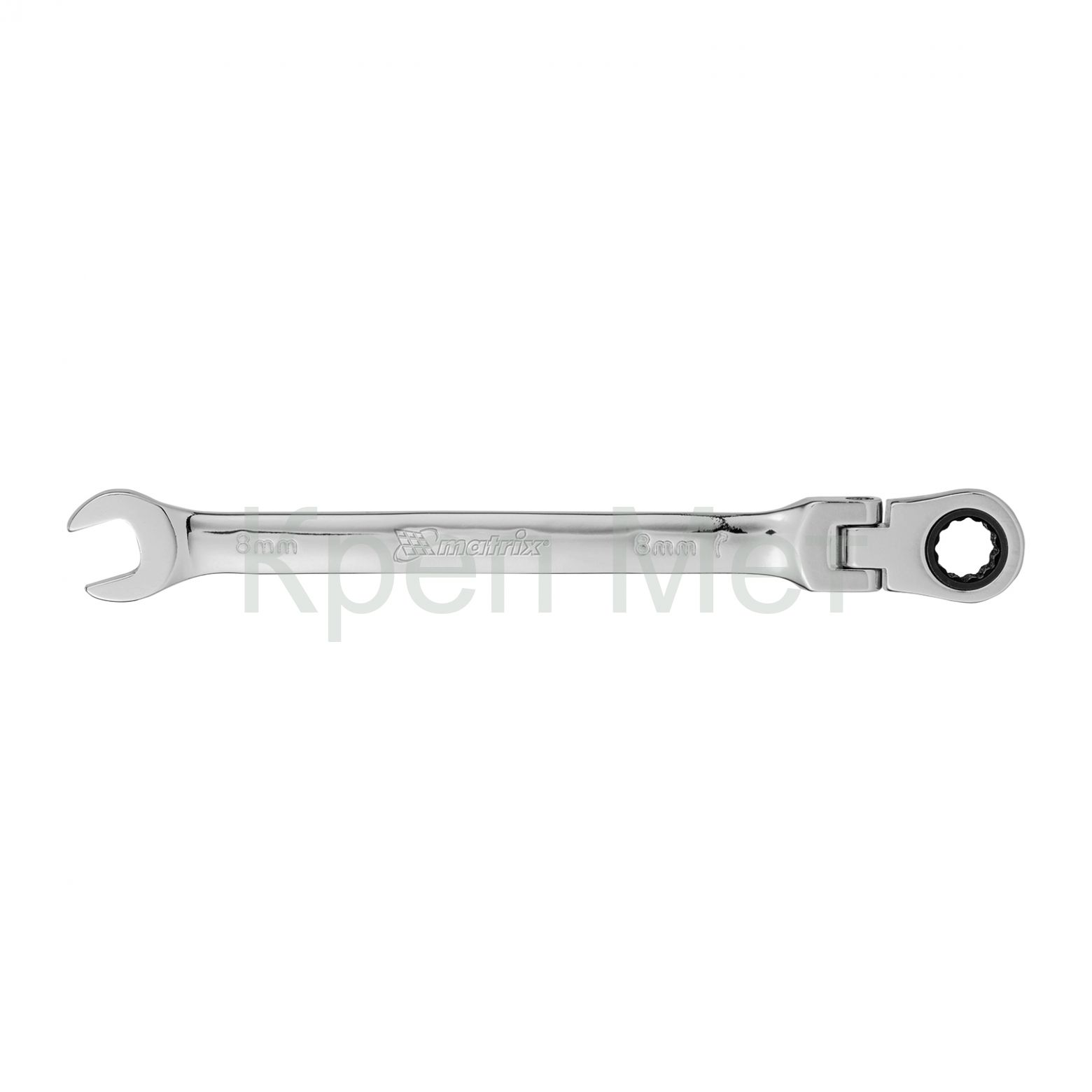 - Ключ комбинированный трещоточный, 8 мм, CrV, шарнирный, зеркальный хром Matrix Professional