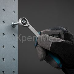 - Храповый механизм оснащен 100 зубцами, что обеспечивает плавность хода инструмента (шаг трещотки всего 3,6 градусов) и делает его удобным для работы в ограниченном пространстве.