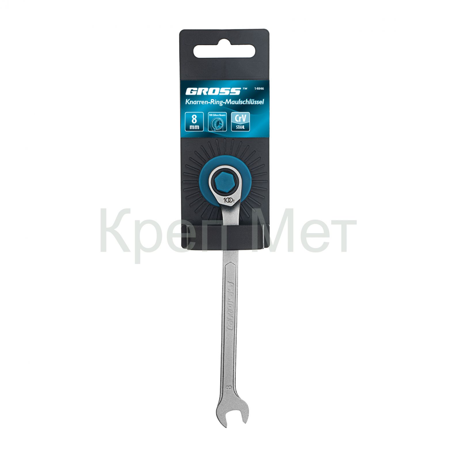 Ключ комбинированный трещоточный, 8 мм, количество зубьев 100 Gross