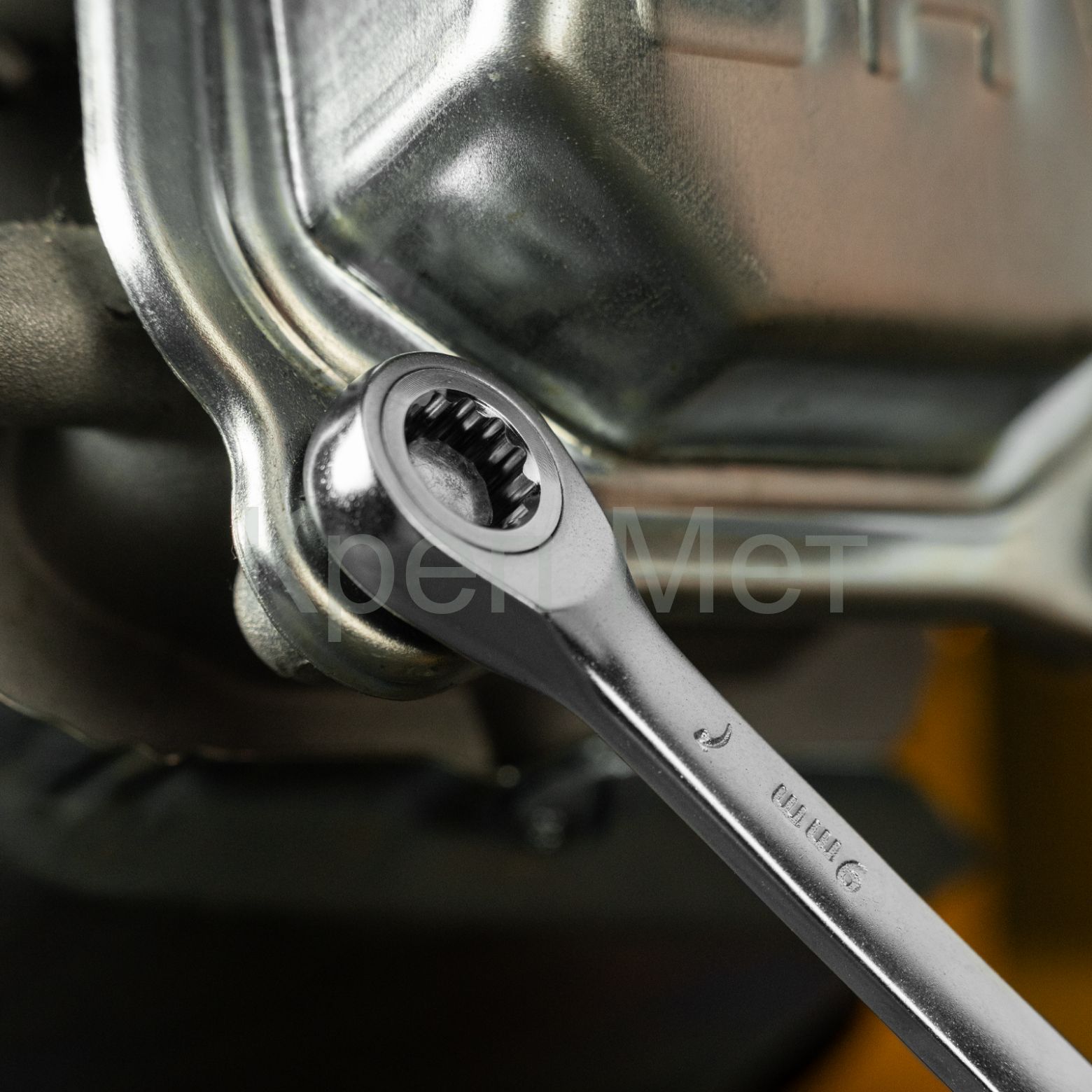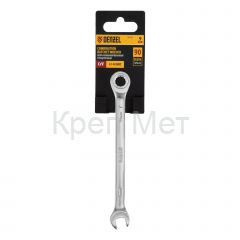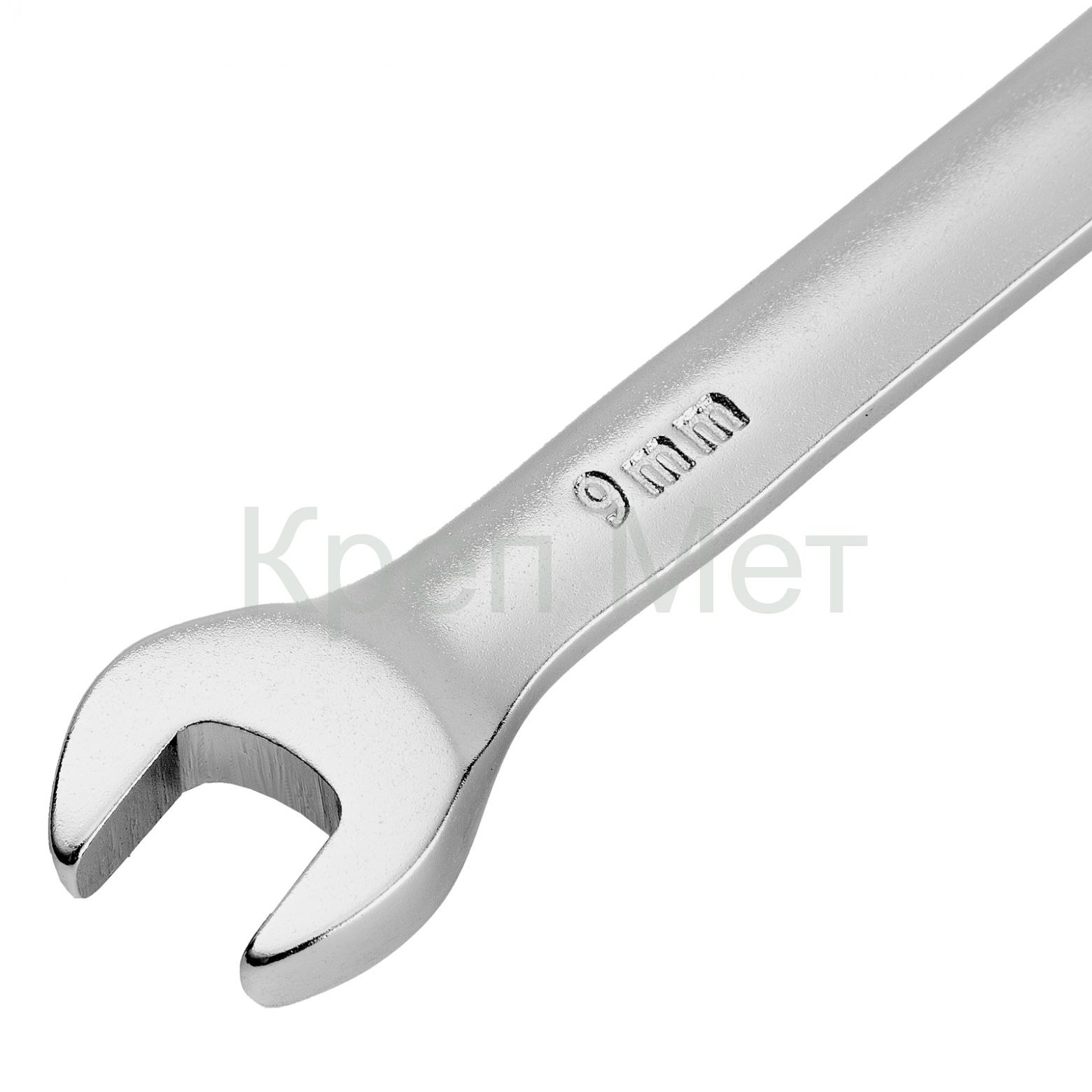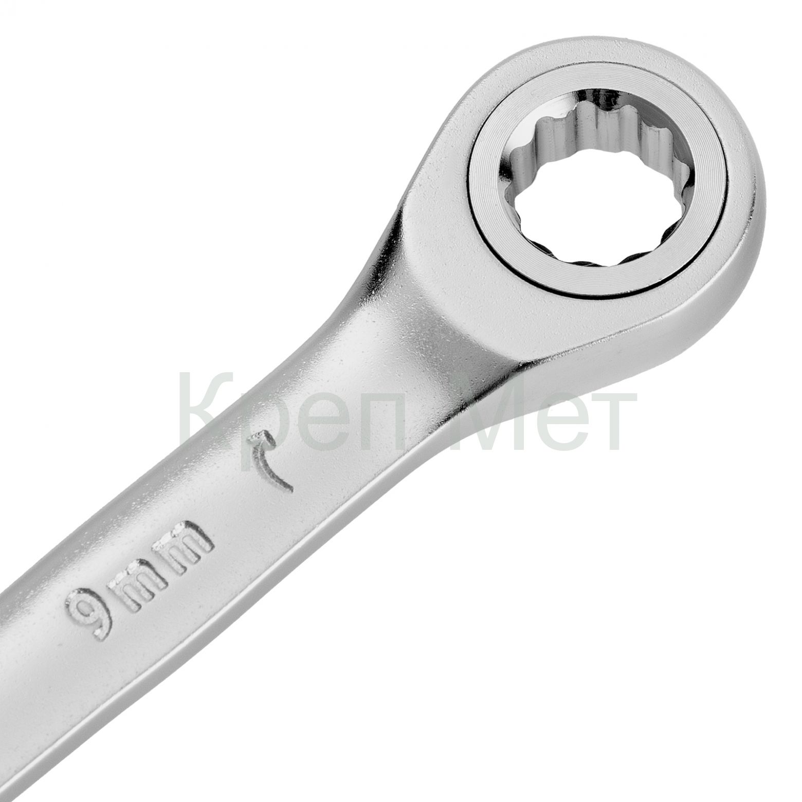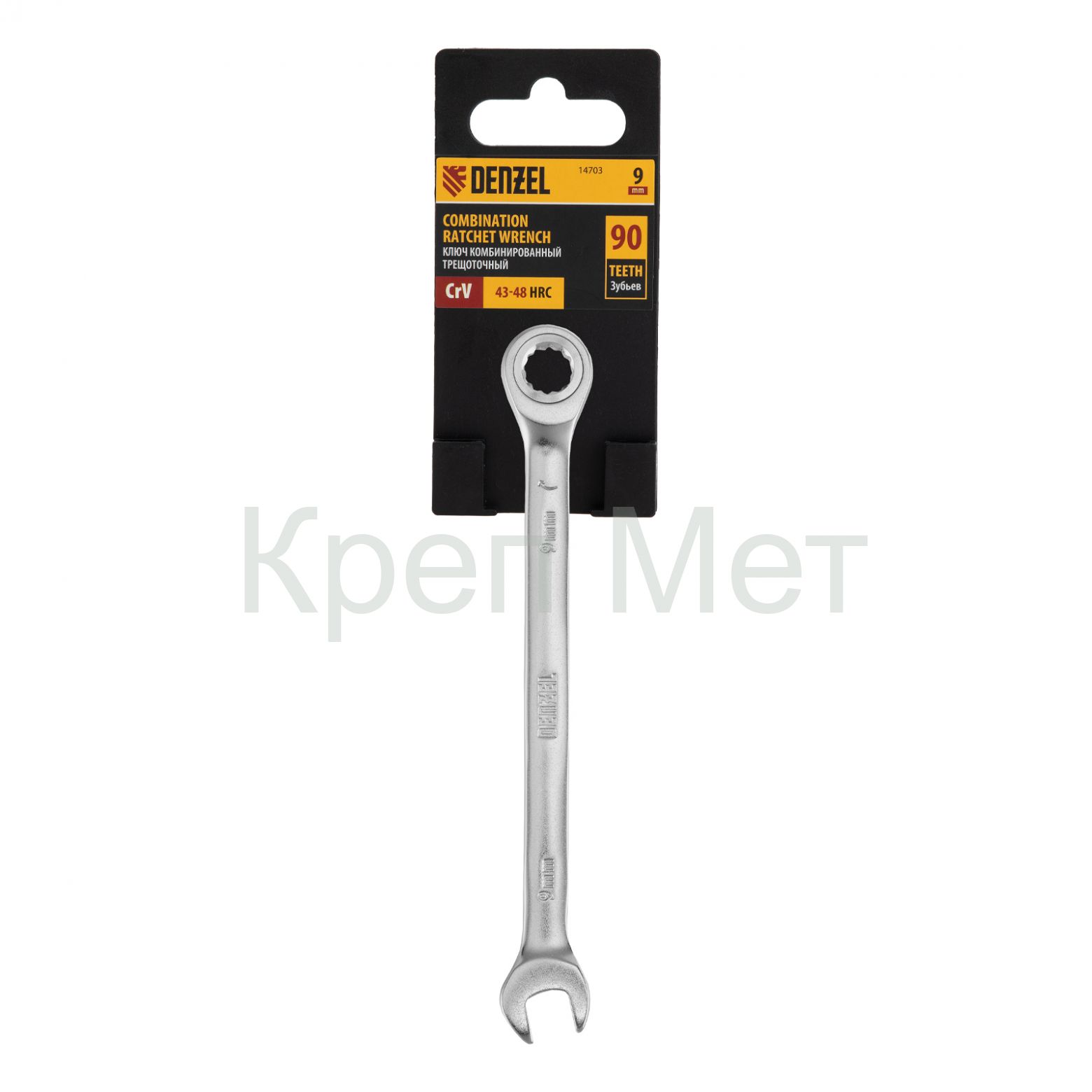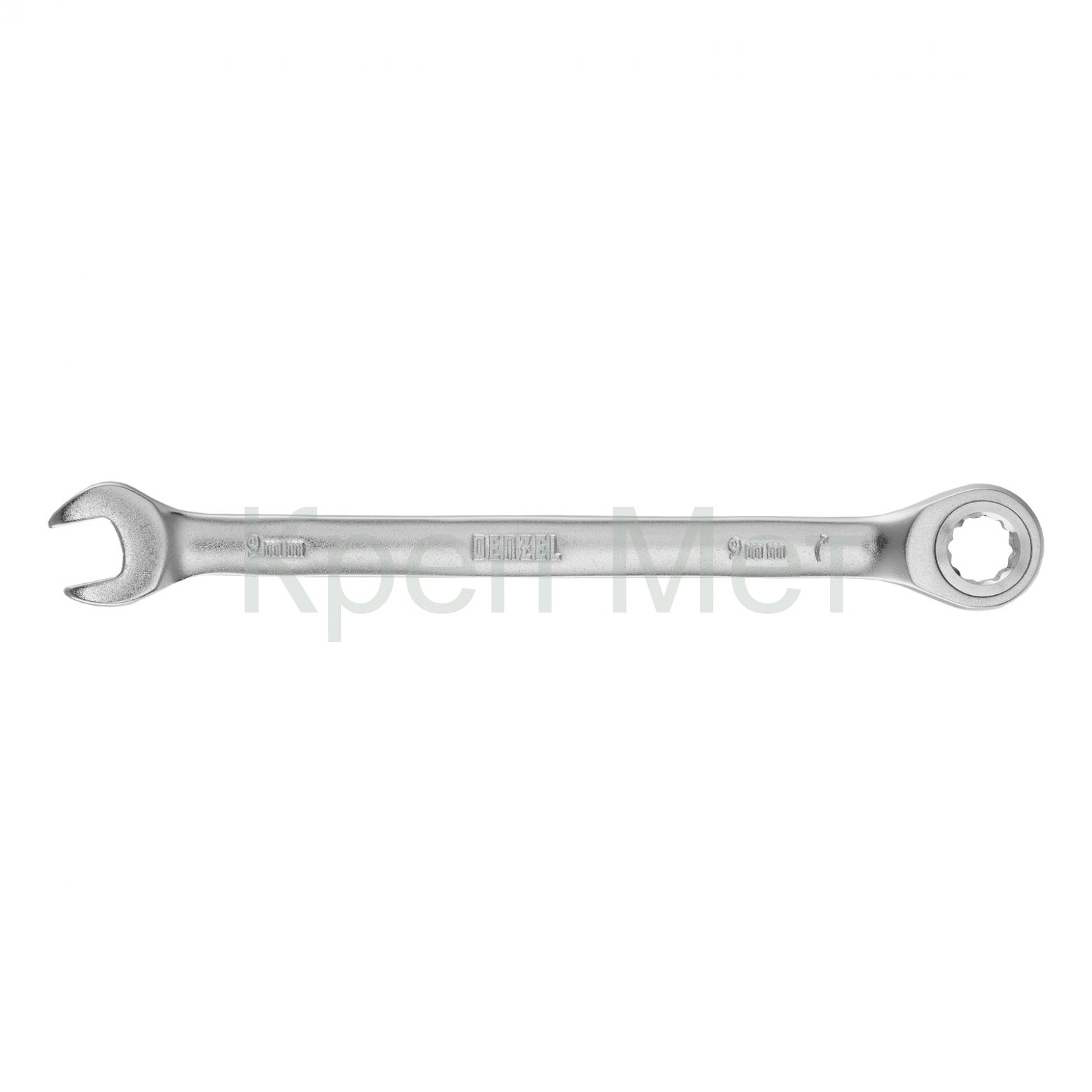 - Ключ комбинированный трещоточный, 9 мм, CrV, матовый хром Denzel