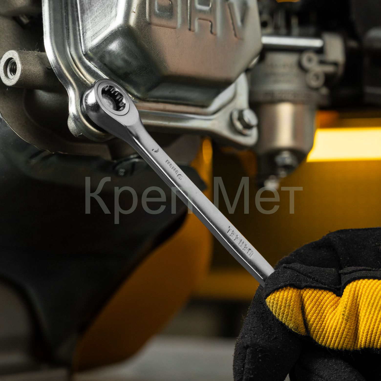 - Плавное вращение — благодаря храповому механизму с 90 зубьями шаг трещотки составляет всего 4°, инструмент удобен для работы в труднодоступных местах.