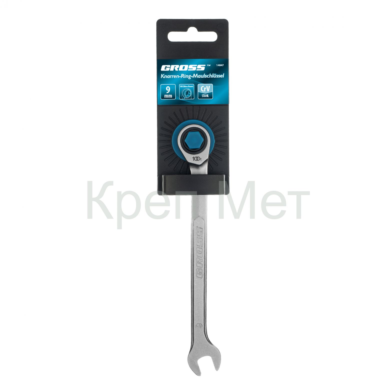 Ключ комбинированный трещоточный, 9 мм, количество зубьев 100 Gross