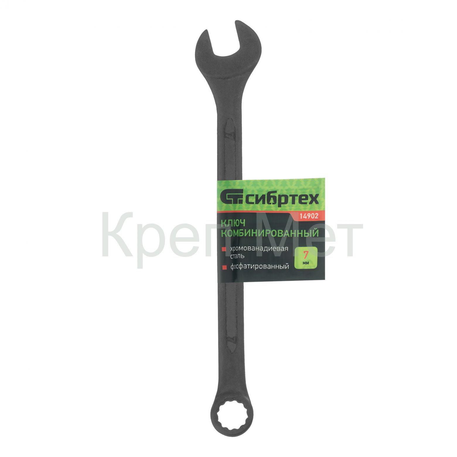 Ключ комбинированый, 7 мм, CrV, фосфатированный Сибртех